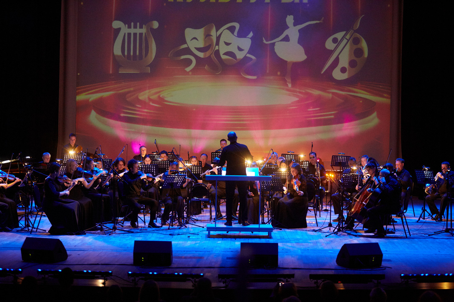 В фойе филармонии царила праздничная атмосфера: работали тематические фотозоны, играл ансамбль джазовой музыки Пензенского колледжа искусств, а также была представлена выставка картин студентов Пензенского художественного училища.