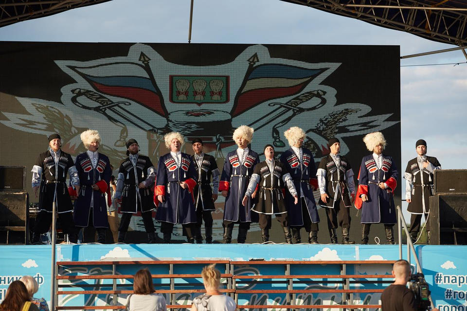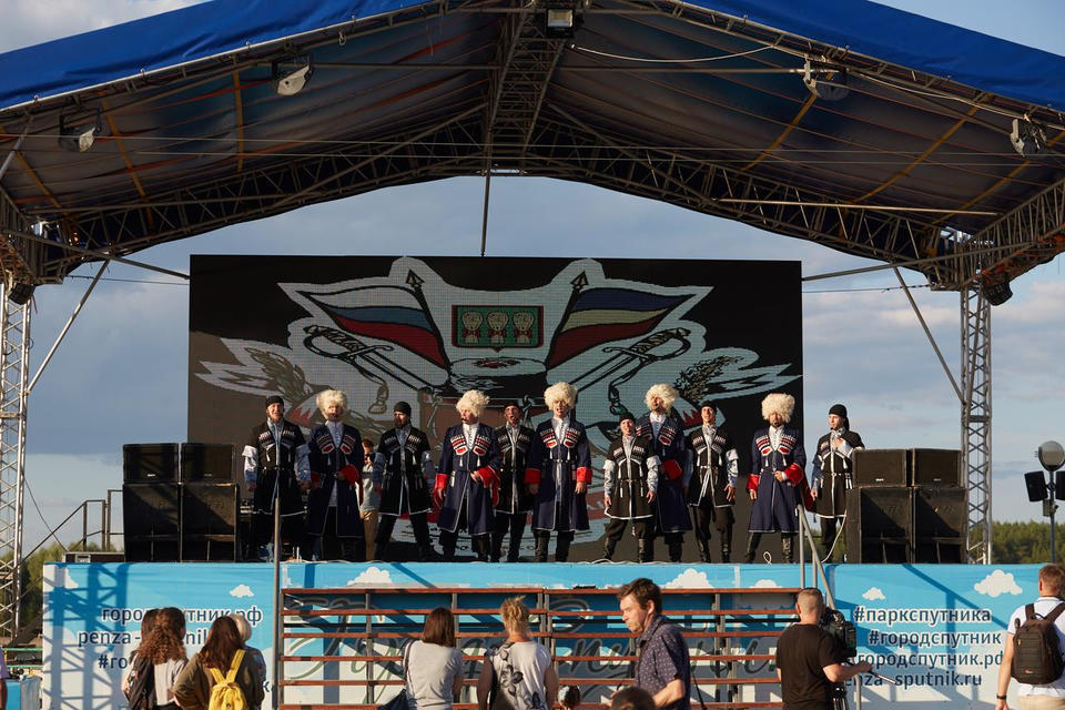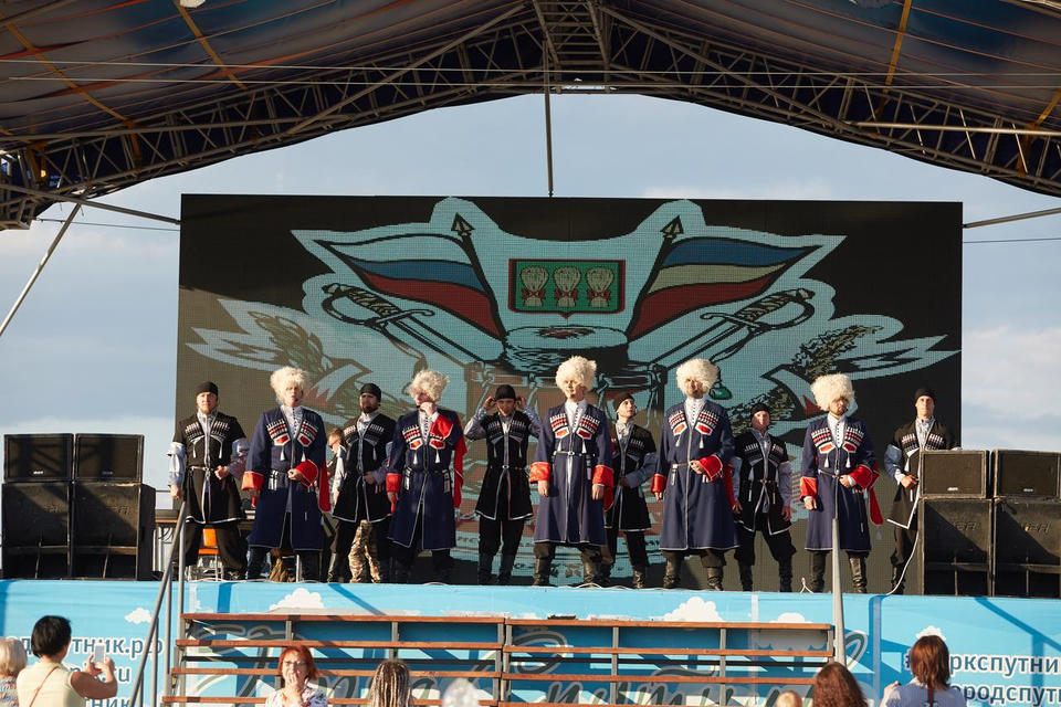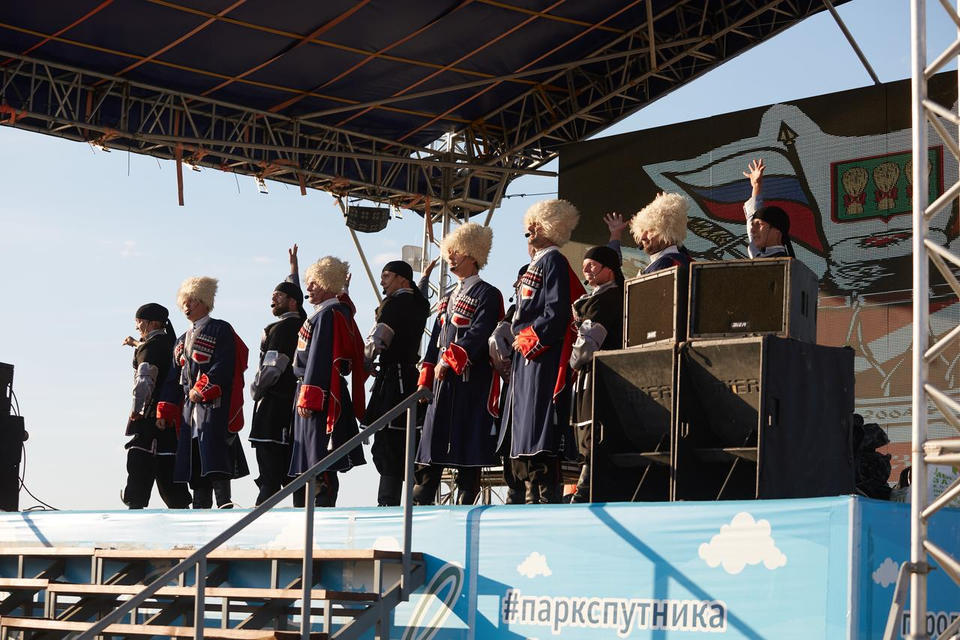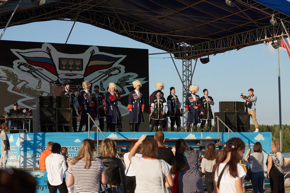 25 июля в рамках акции на концертной площадке города Спутник с музыкальной программой для горожан выступил мужской хор ансамбля песни и танца «Казачья застава» (руководитель – Андрей Сугоняк).