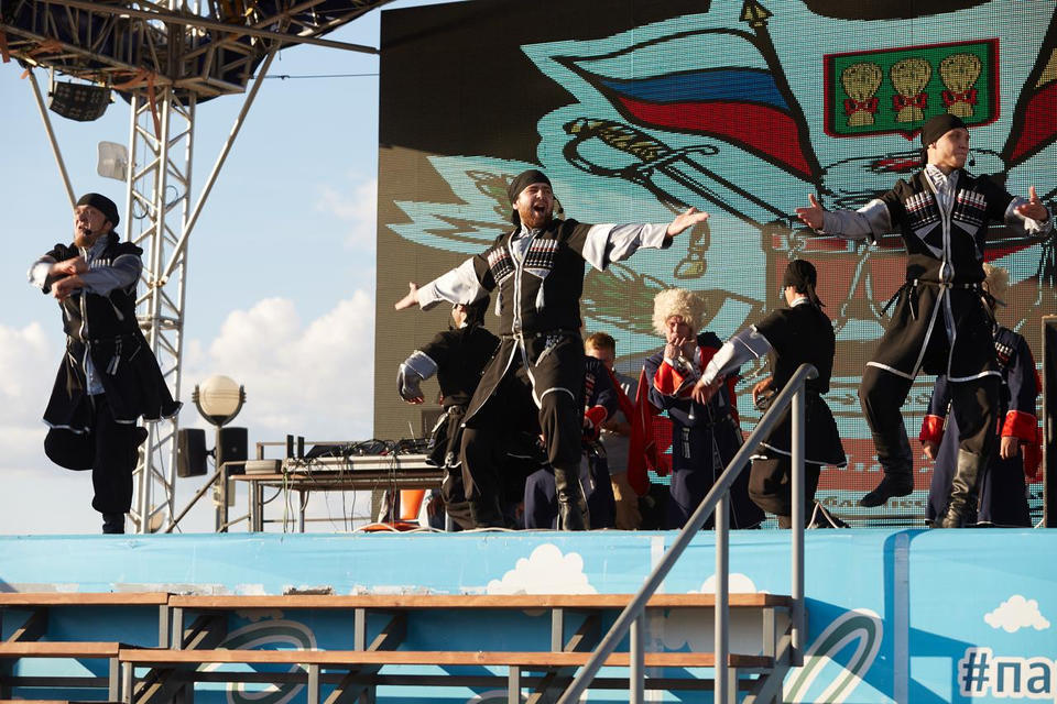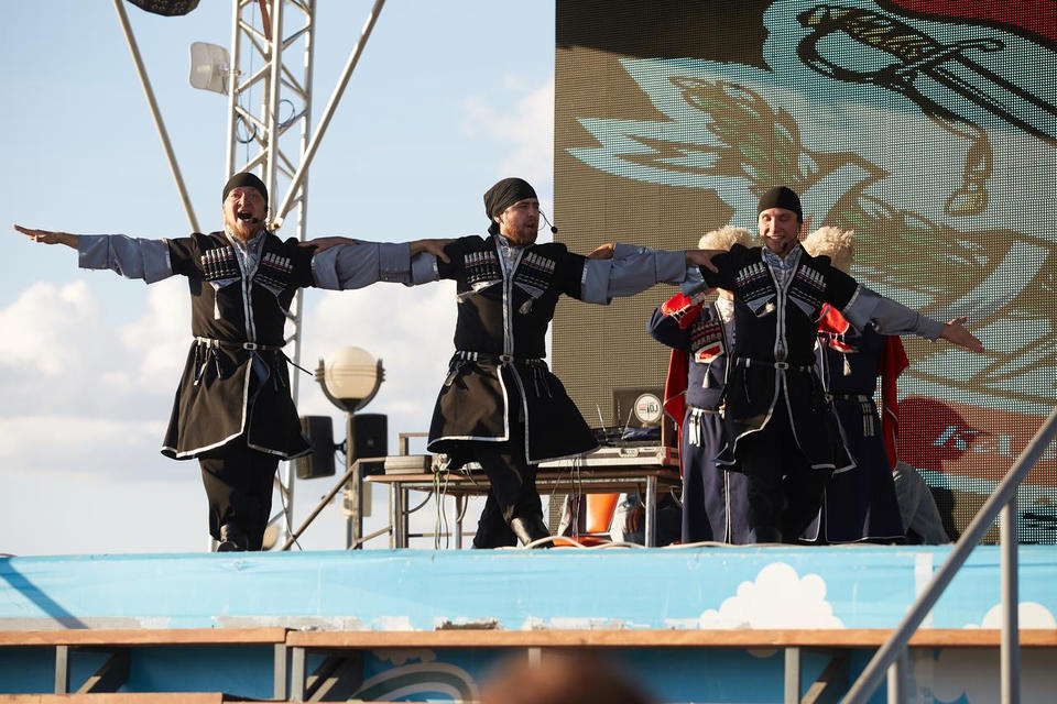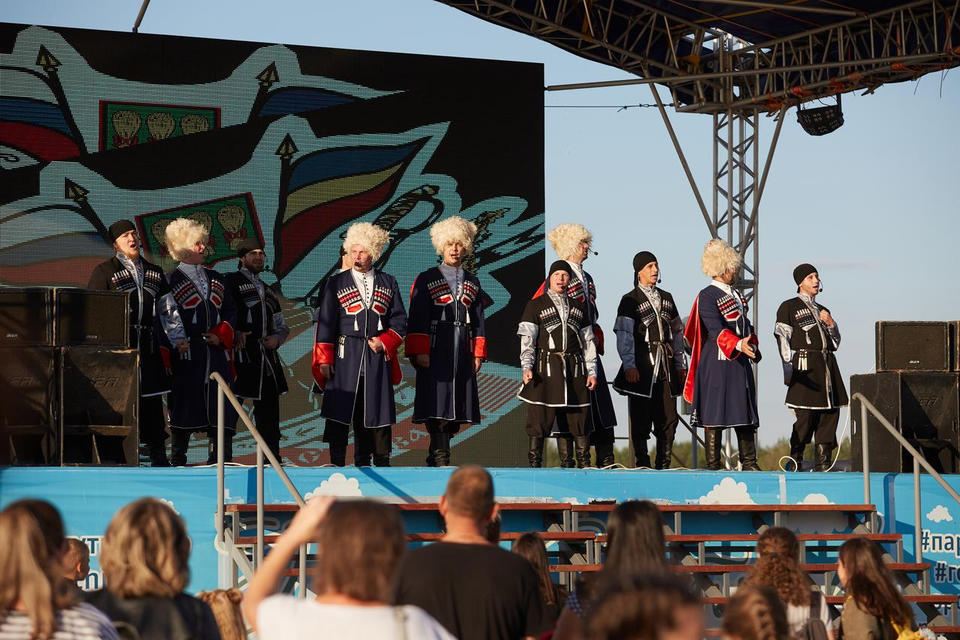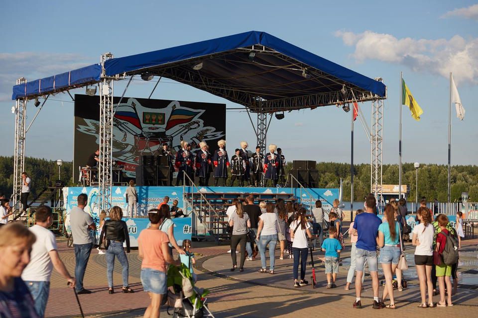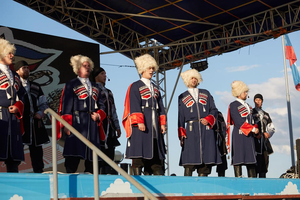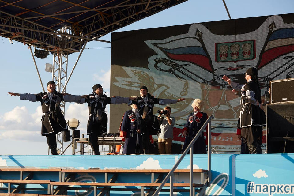 25 июля в рамках акции на концертной площадке города Спутник с музыкальной программой для горожан выступил мужской хор ансамбля песни и танца «Казачья застава» (руководитель – Андрей Сугоняк).