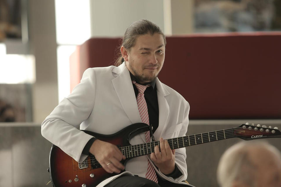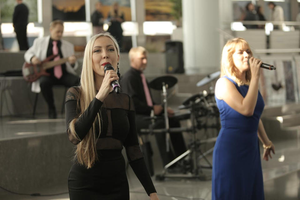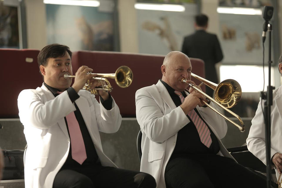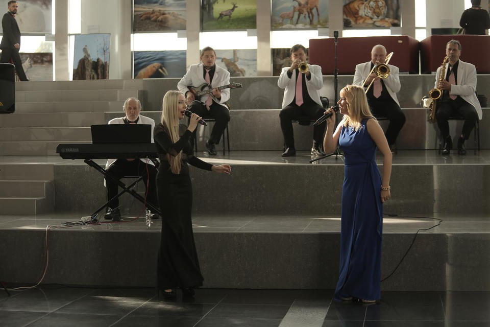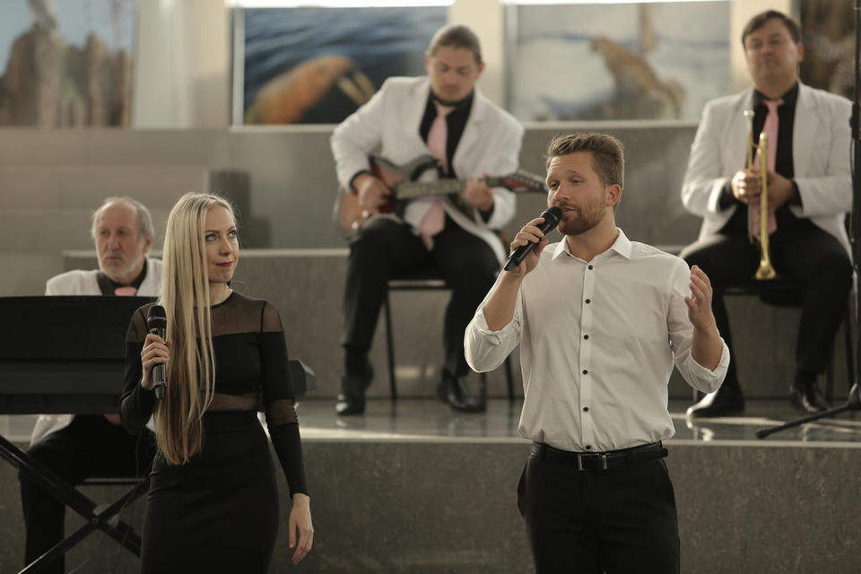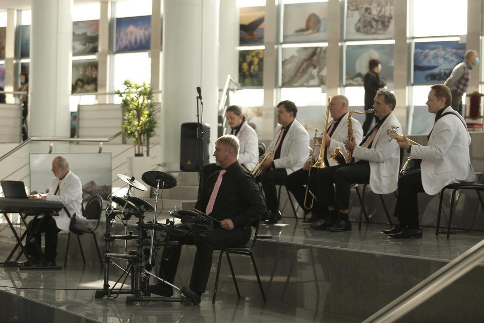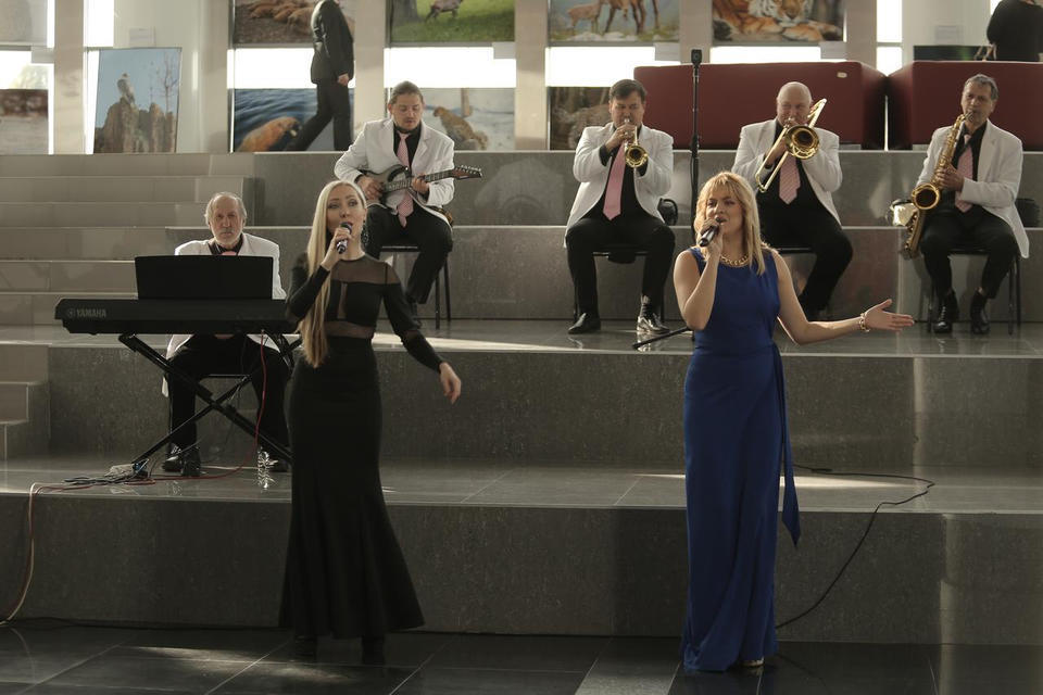 В фойе гостей праздника с программой «Добро пожаловать!» встречал эстрадно-джазового ансамбль «Экспресс-бэнд» п/у Юрия Белоногова.