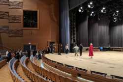 В ходе экскурсионного маршрута по филармонии ребята побывали в концертных залах, заглянули за кулисы, послушали информацию о современном звуковом и световом оборудовании, узнали интересные факты об архитектурных и стилистических особенностях здания.