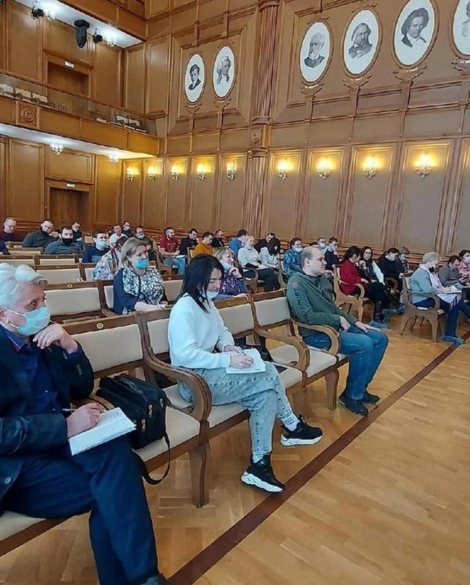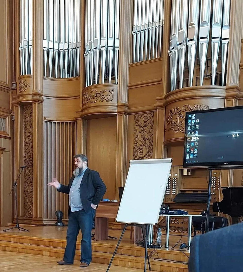 В Органном зале филармонии обучение проводит доцент кафедры музыкальной звукорежиссуры, начальник отдела технических средств обучения Нижегородской государственной консерватории им. М.И. Глинки Дмитрий Игоревич Сычёв.