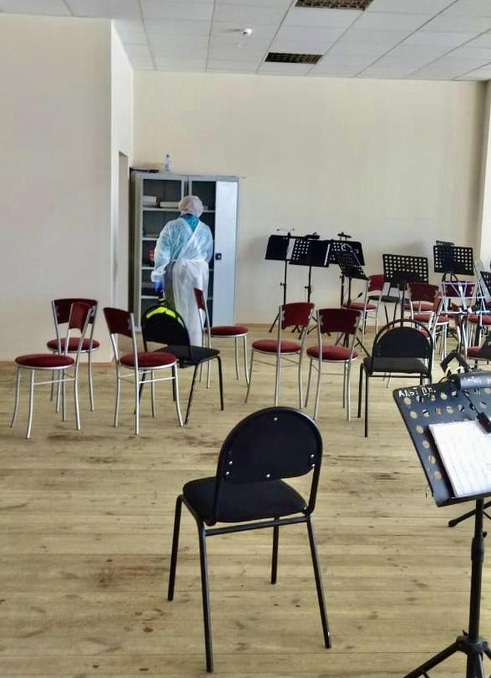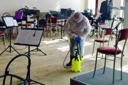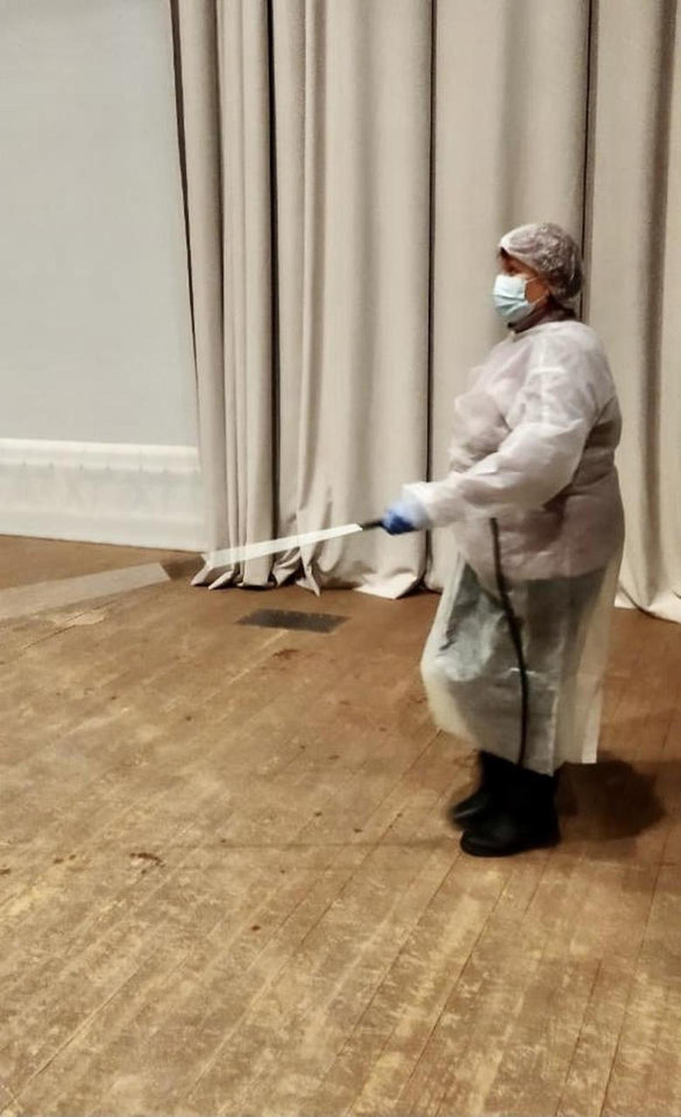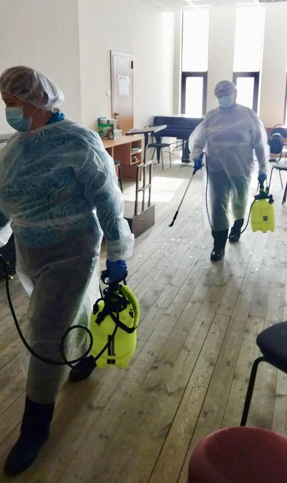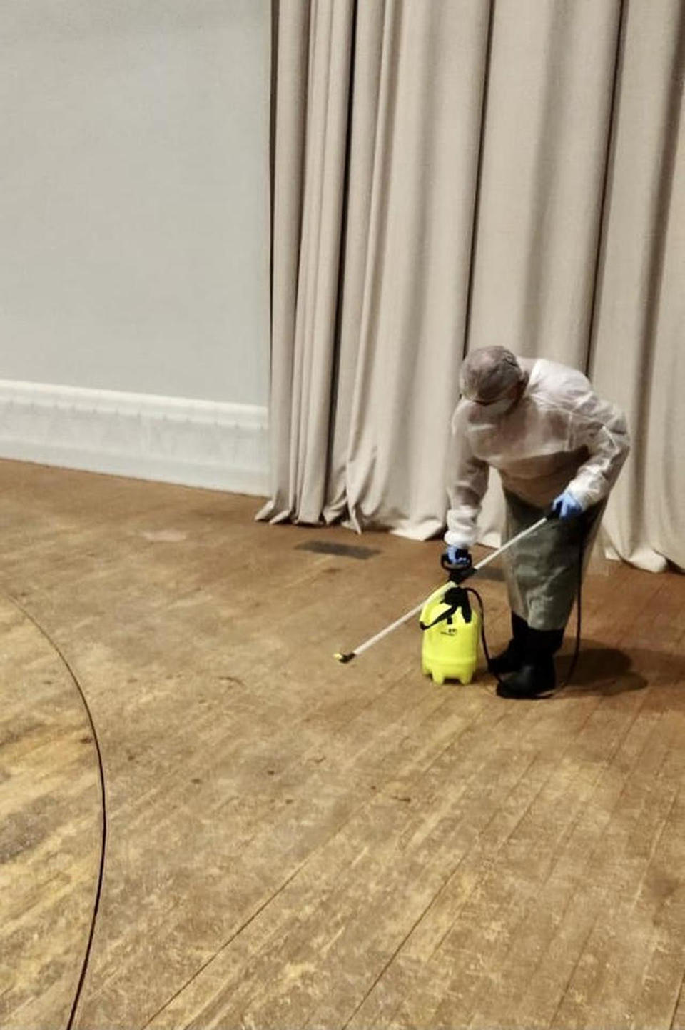 Медицинскими дезинфекторами проведена обработка зрительских залов учреждения культуры, а также репетиционных комнат. При работе были использованы специальные дезинфицирующие средства.