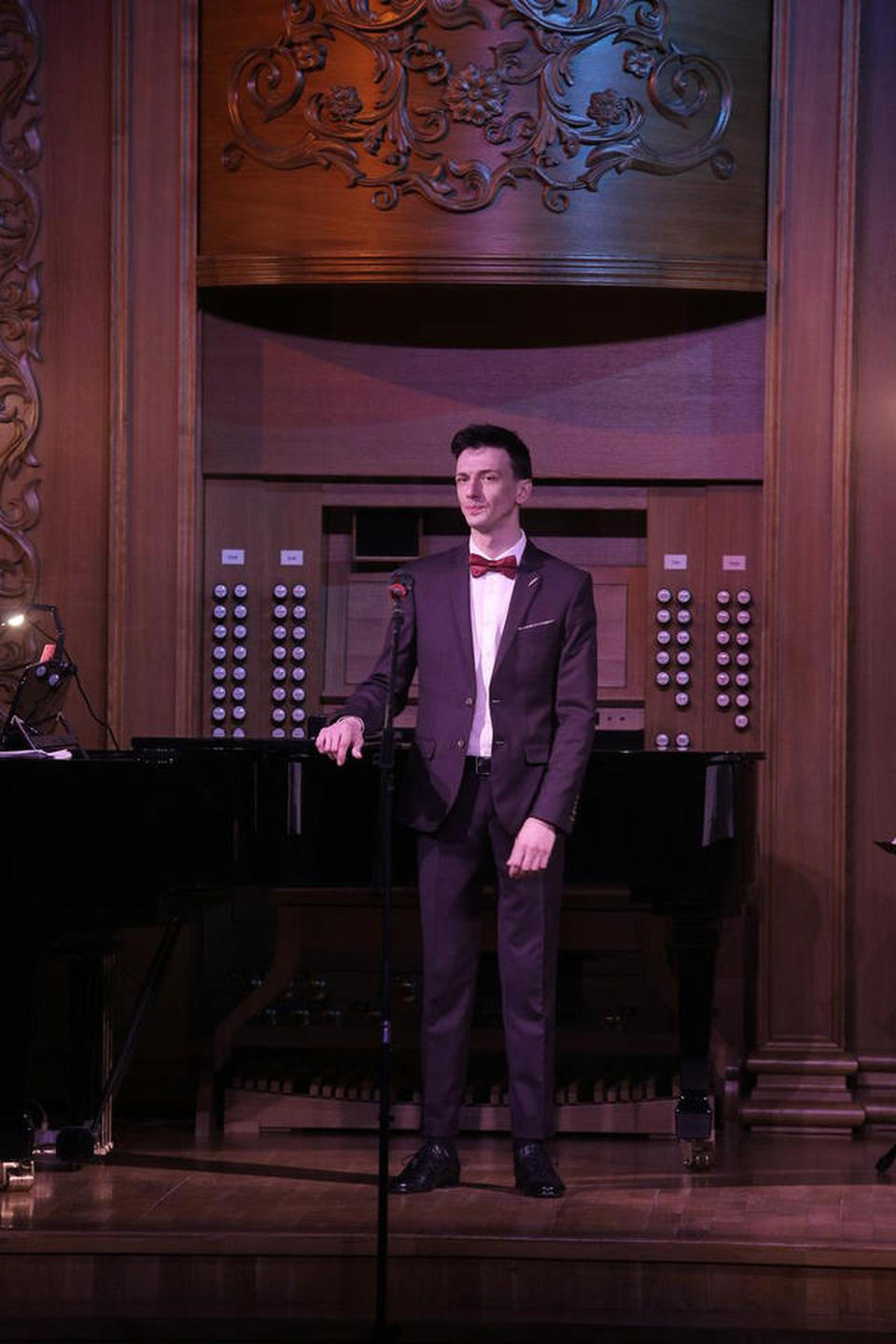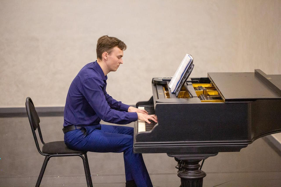 Перед концертом зрителей с программой «Добро пожаловать!» встречал музыкант эстрадно-джазового ансамбля «Экспресс-бэнд» Геннадий Купринович (фортепиано).