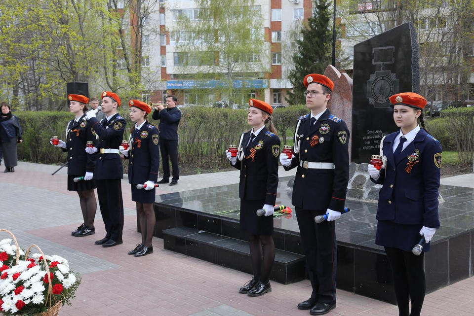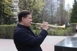 Руководитель эстрадно-джазового ансамбля «Экспресс-бэнд» Юрий Белоногов выступил для участников церемонии возложения цветов у памятника жертвам радиационных катастроф, которая состоялась 26 апреля в Пензе.