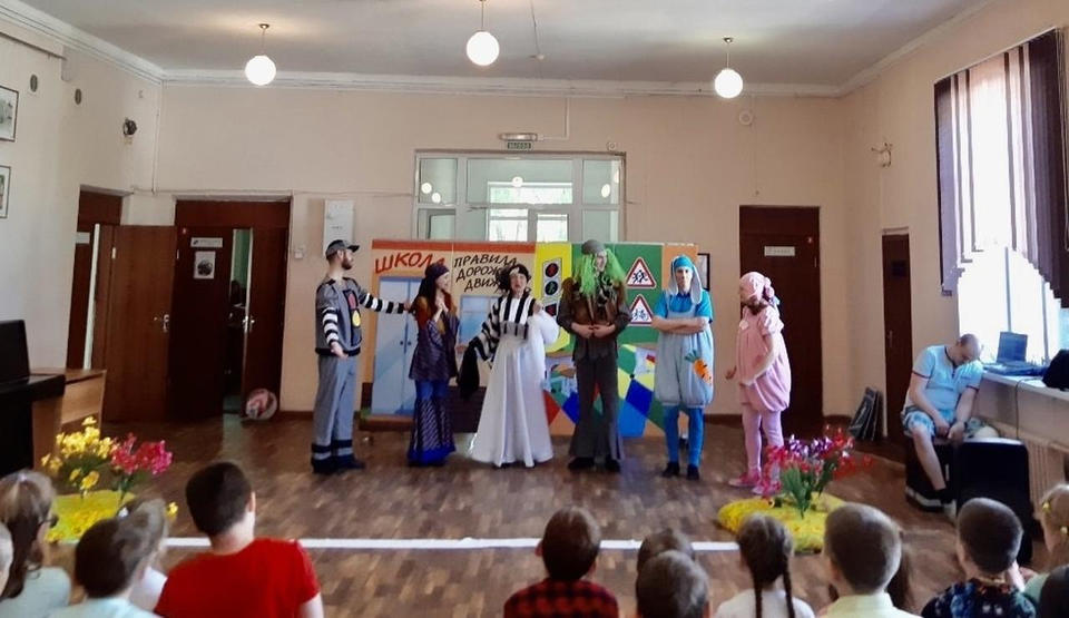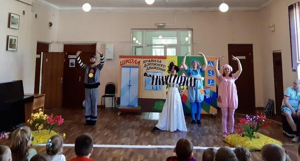 В весёлой развлекательной форме артисты объяснили ребятам, как правильно переходить дорогу, что обозначают дорожные знаки, как ориентироваться по светофору.