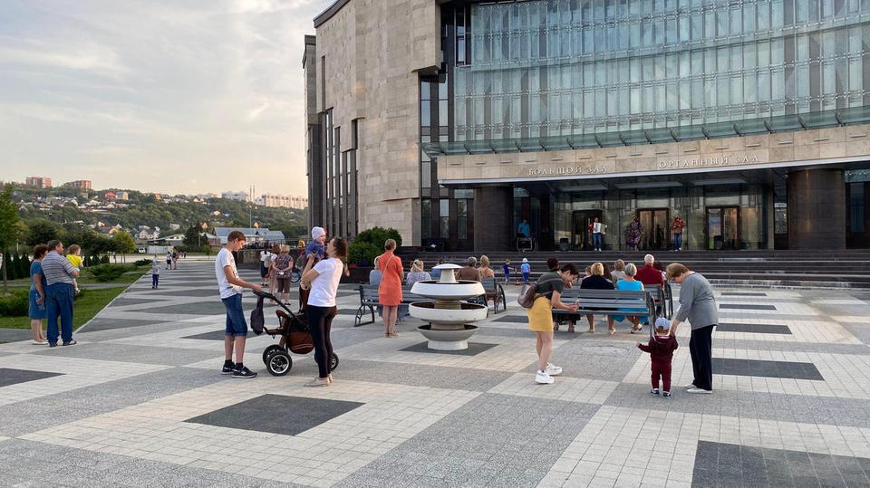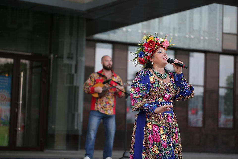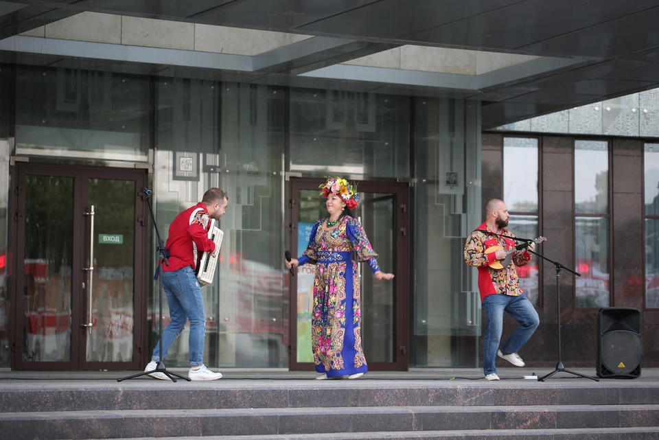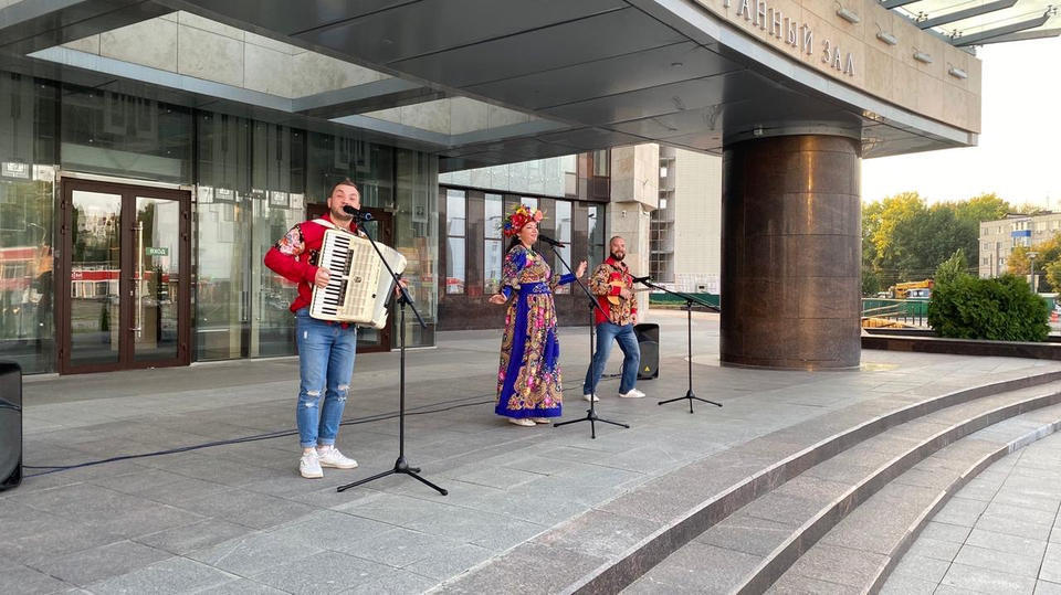 26 августа на площади возле центрального входа в здание филармонии с концертной программой выступили Заслуженный работник культуры Пензенской области Наталья Мещерякова и артисты ансамбля «Злато-Серебро» – Александр Шмырёв и Илья Антонов.