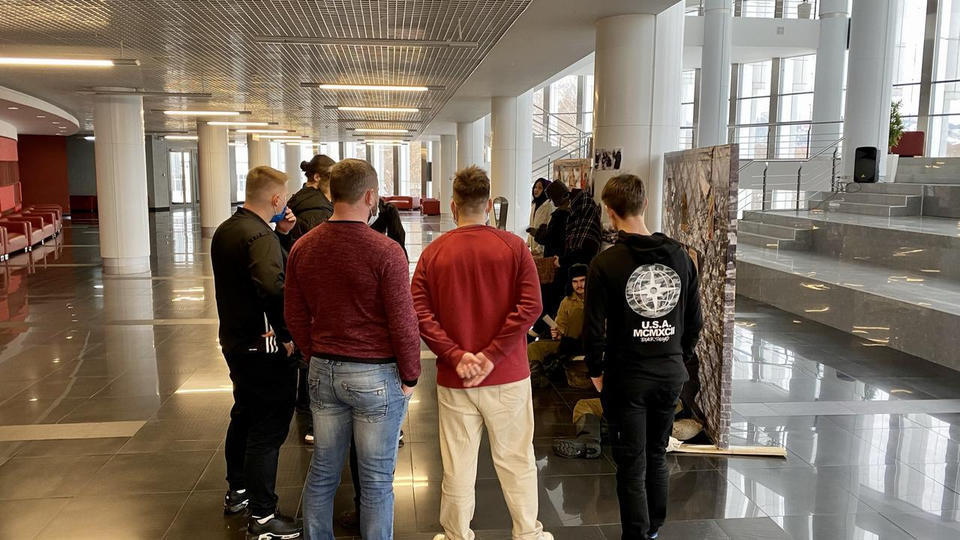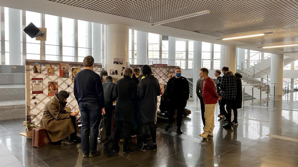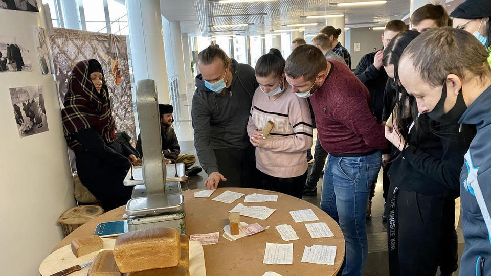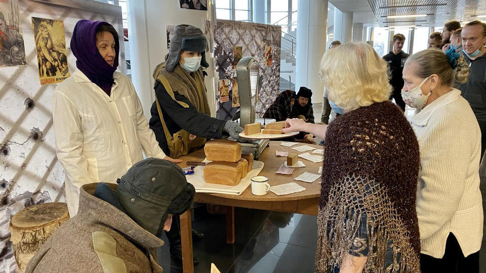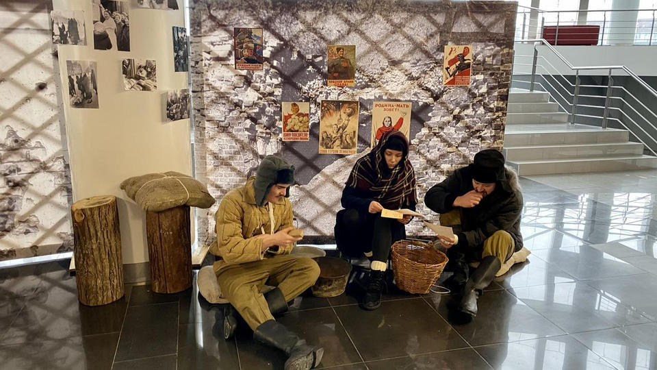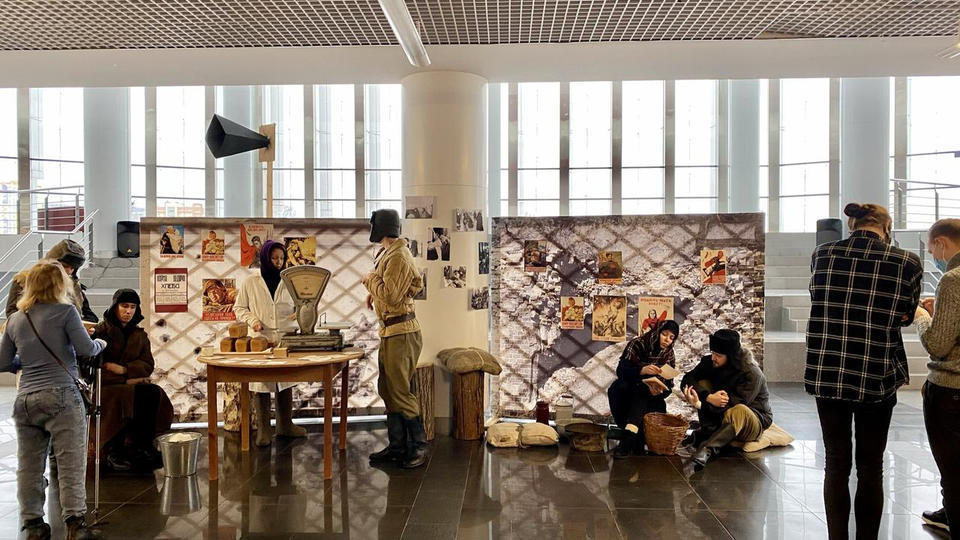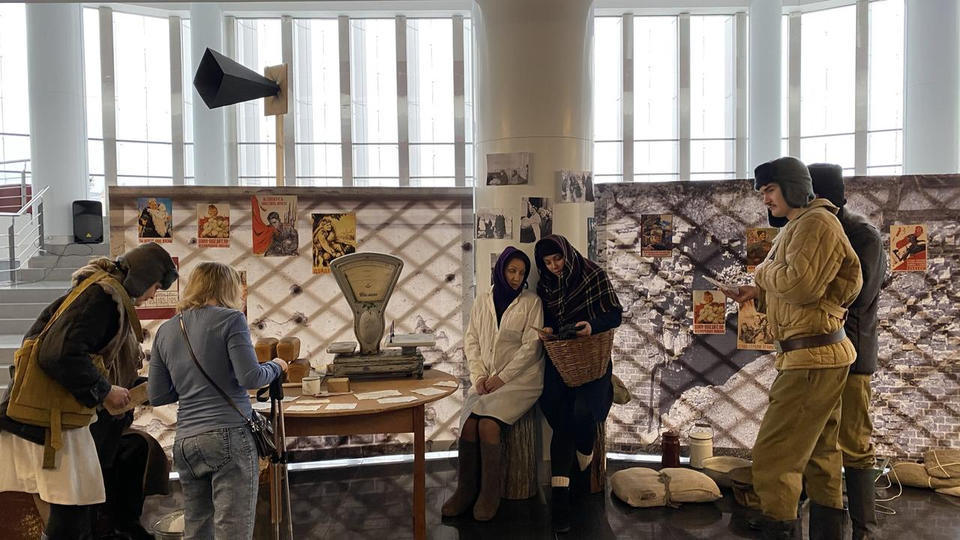 27 января в фойе 2 этажа Киноконцертного зала «Пенза» развернулась тематическая инсталляция в исполнении артистов группы «Калейдоскоп». Перед зрителями предстала картина из прошлого – пункт выдачи хлеба на улице блокадного Ленинграда.