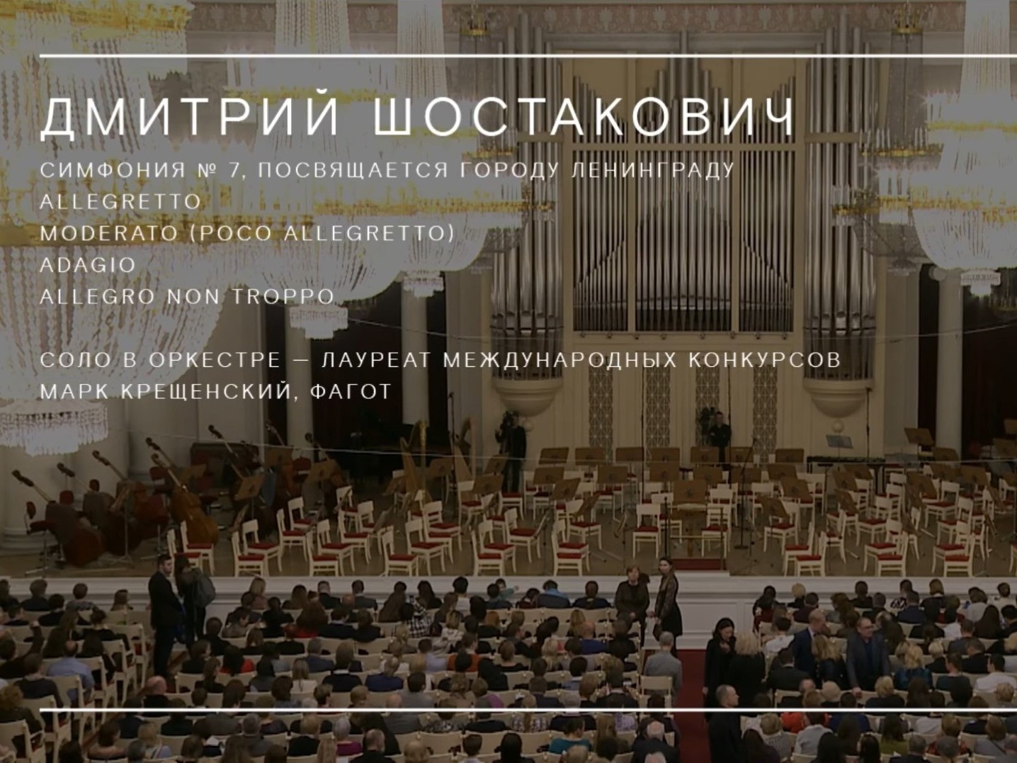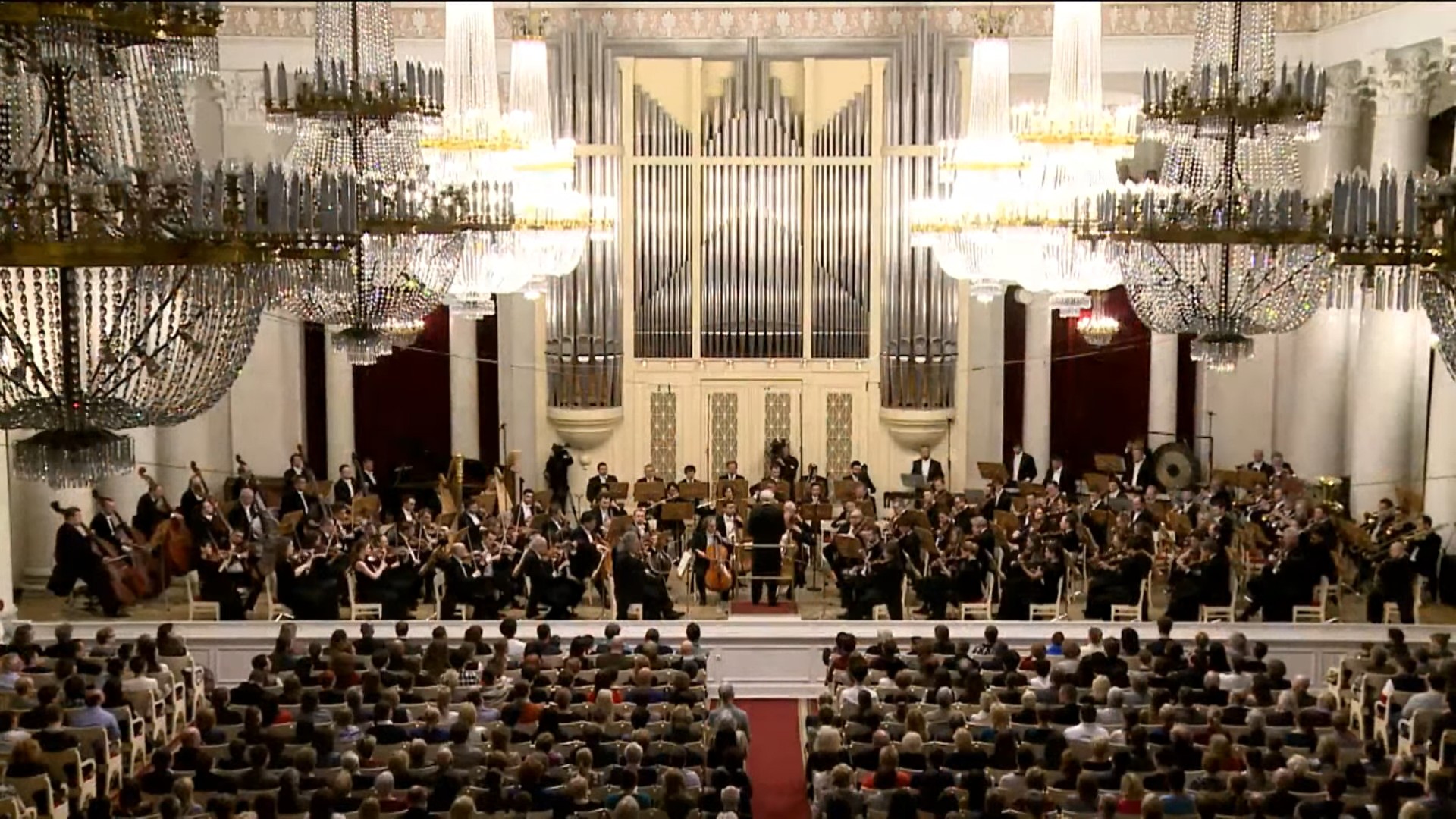 Трансляция на портале Культура. РФ из Большого зала Санкт-Петербургской академической филармонии им. Д. Д. Шостаковича. На сцене — заслуженный коллектив России академический симфонический оркестр филармонии под управлением Юрия Темирканова.