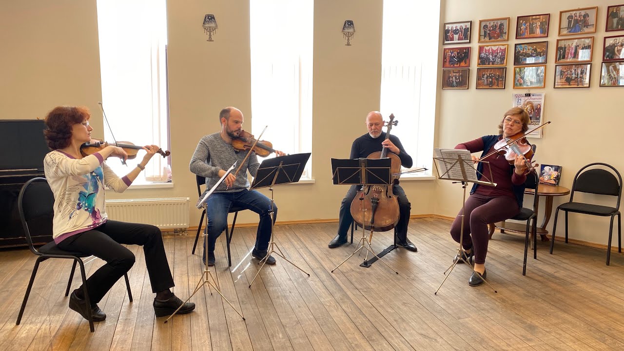 Струнный квартет «Премьера» репетирует новую программу, с которой планирует выступить в мае. В исполнении музыкантов зрители услышат «Испанские мотивы» (6+).