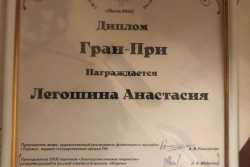 Поздравляем Анастасию с наивысшей наградой фестиваля и желаем новых творческих успехов!