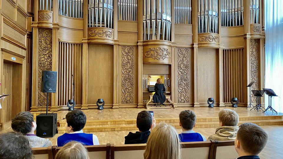 Ребята узнали интересные факты об архитектурных и стилистических особенностях здания филармонии, заглянули в концертные залы и познакомились с главным достоянием учреждения культуры – величественным органом.