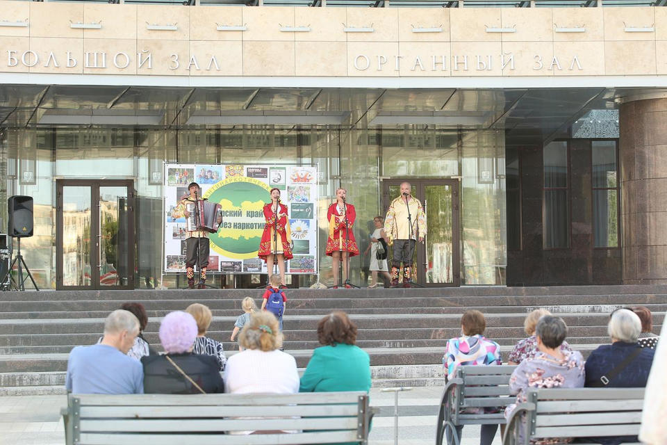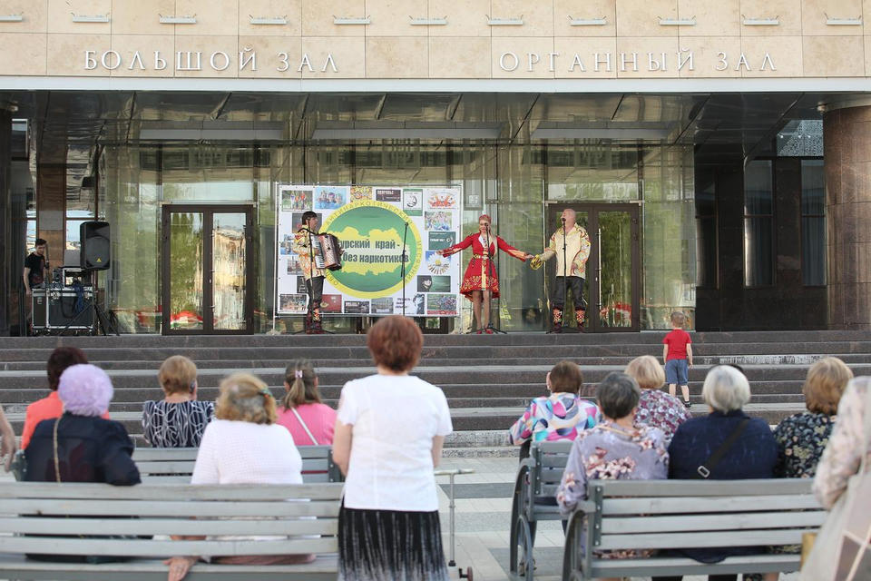 Концертная программа «Музыка – против наркотиков!» состоялась 27 мая на площадке перед центральным входом в здание филармонии.