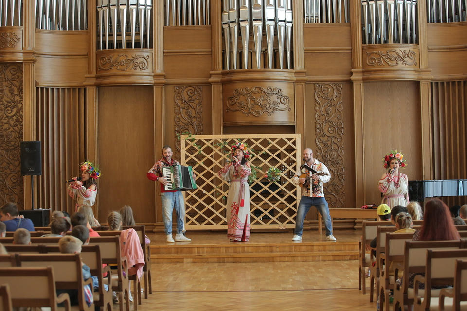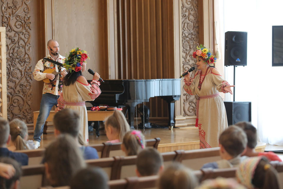 Вместе с музыкантами ребята водили хороводы, играли в старинные игры, а также участвовали в увлекательных конкурсах и викторинах.