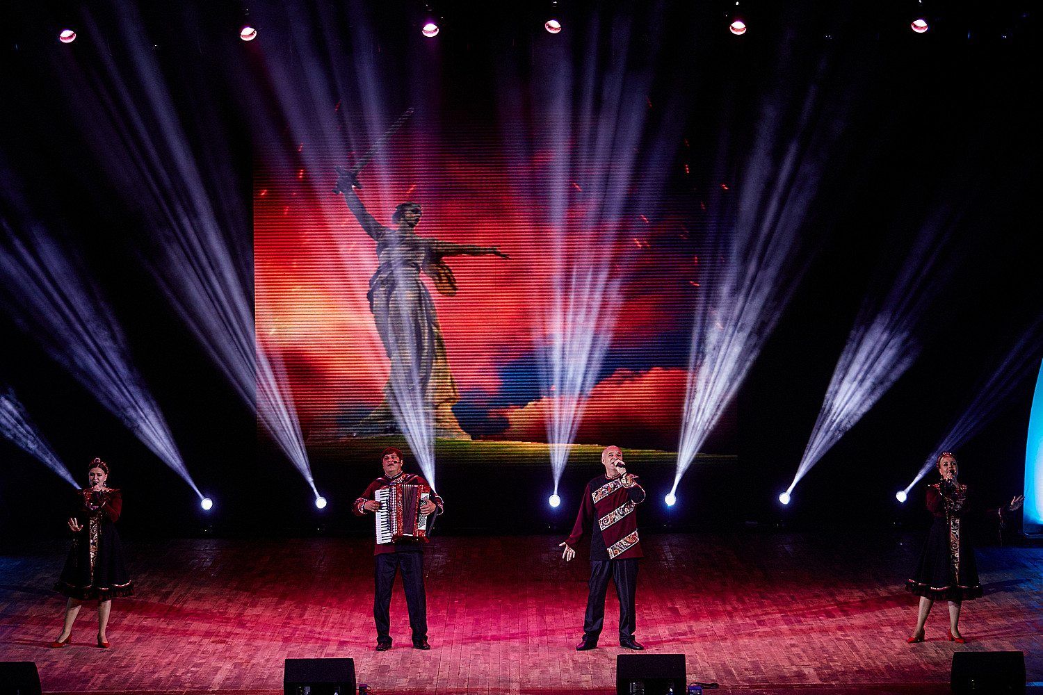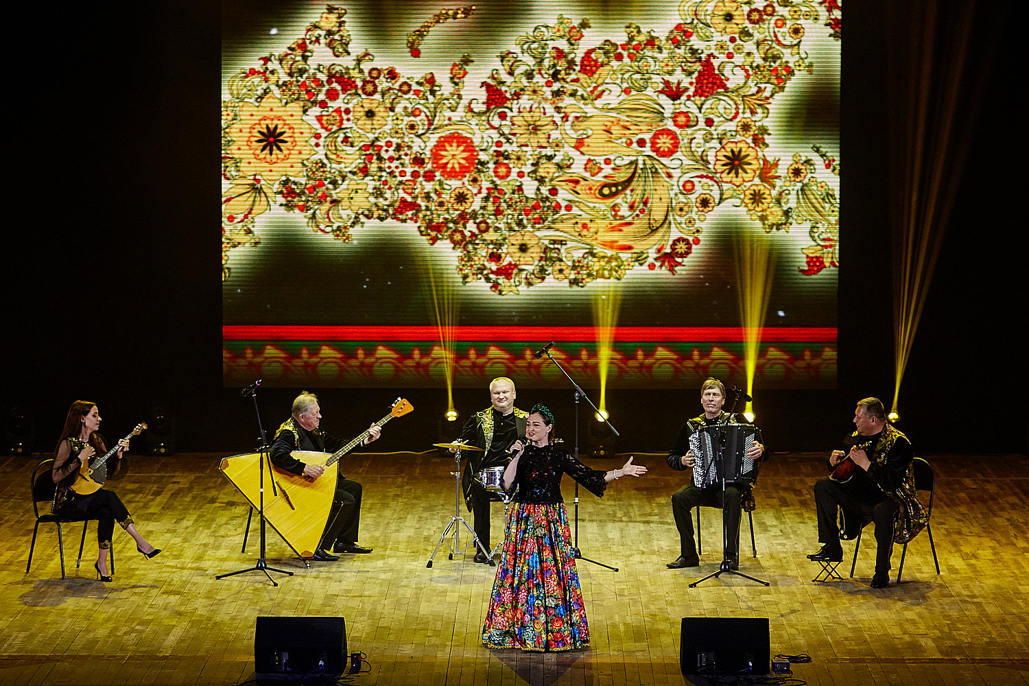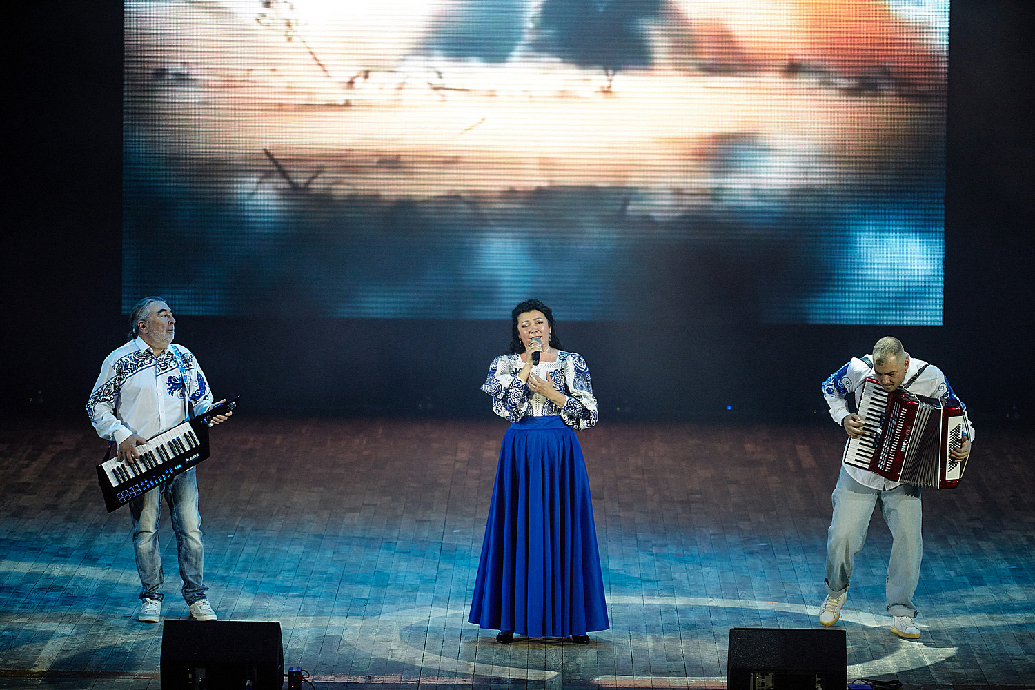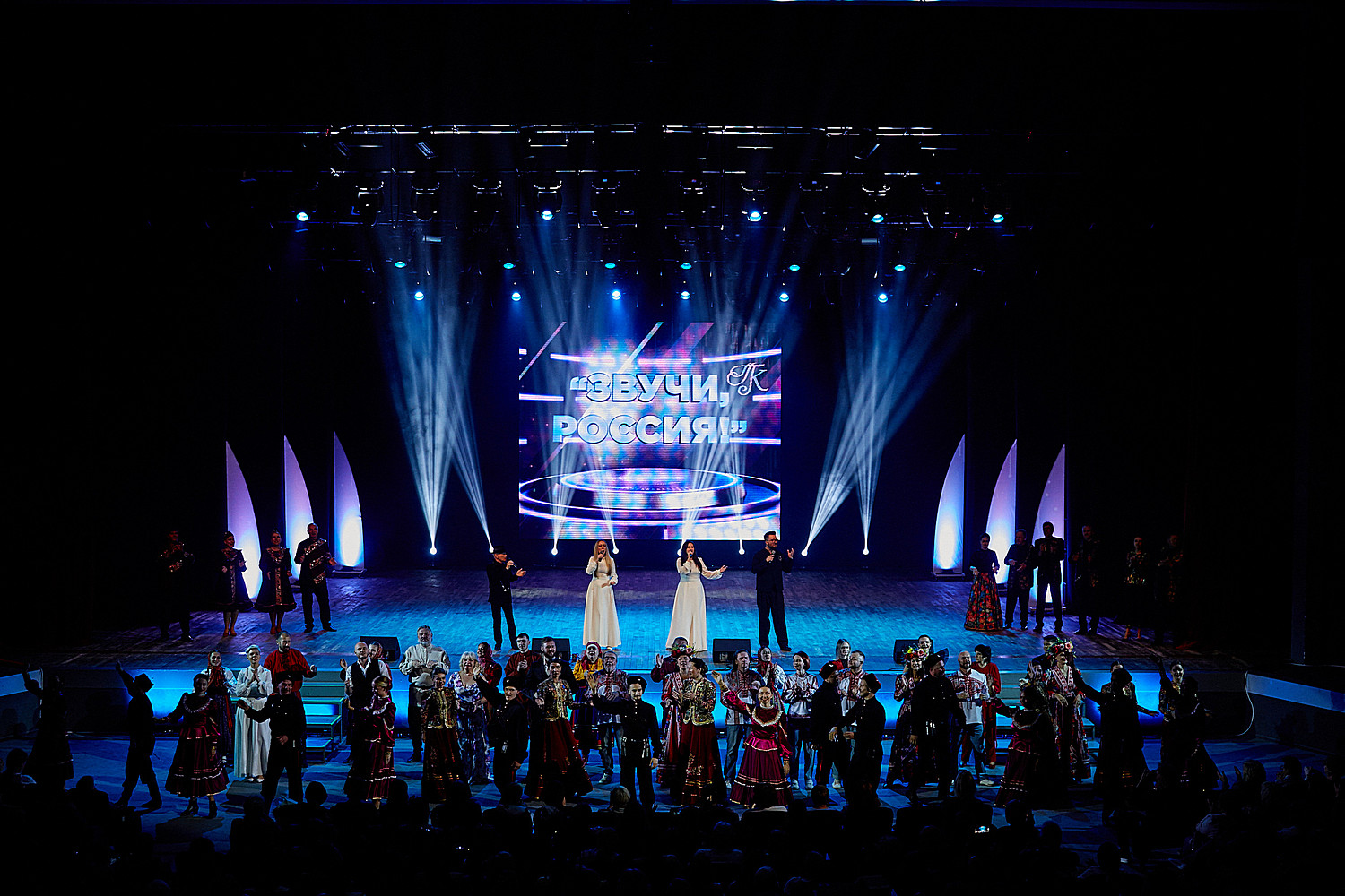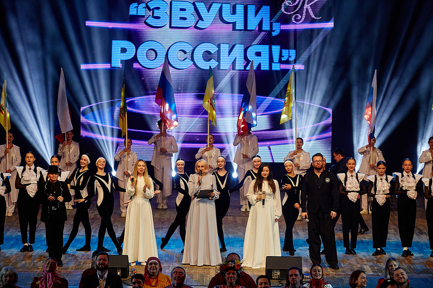 В исполнении артистов прозвучали проникновенные песни о России, военно-патриотические композиции, русские народные песни и вдохновляющие эстрадные песни.