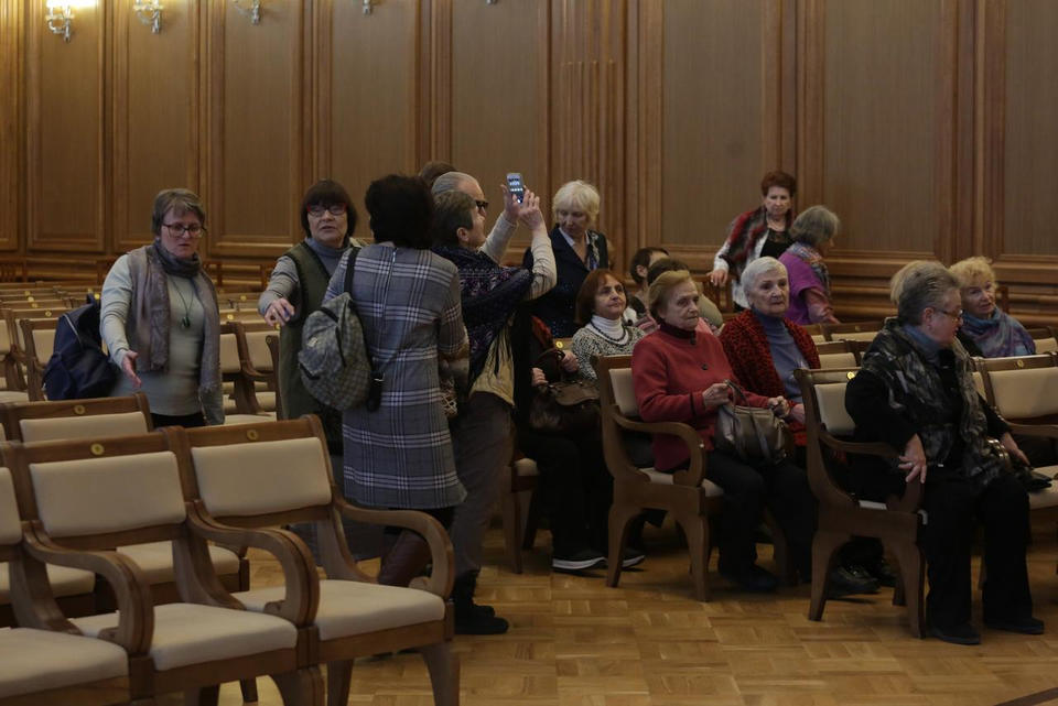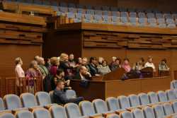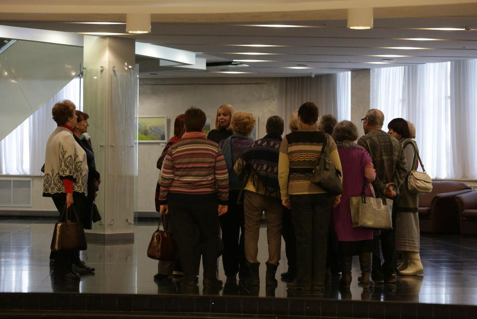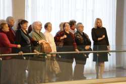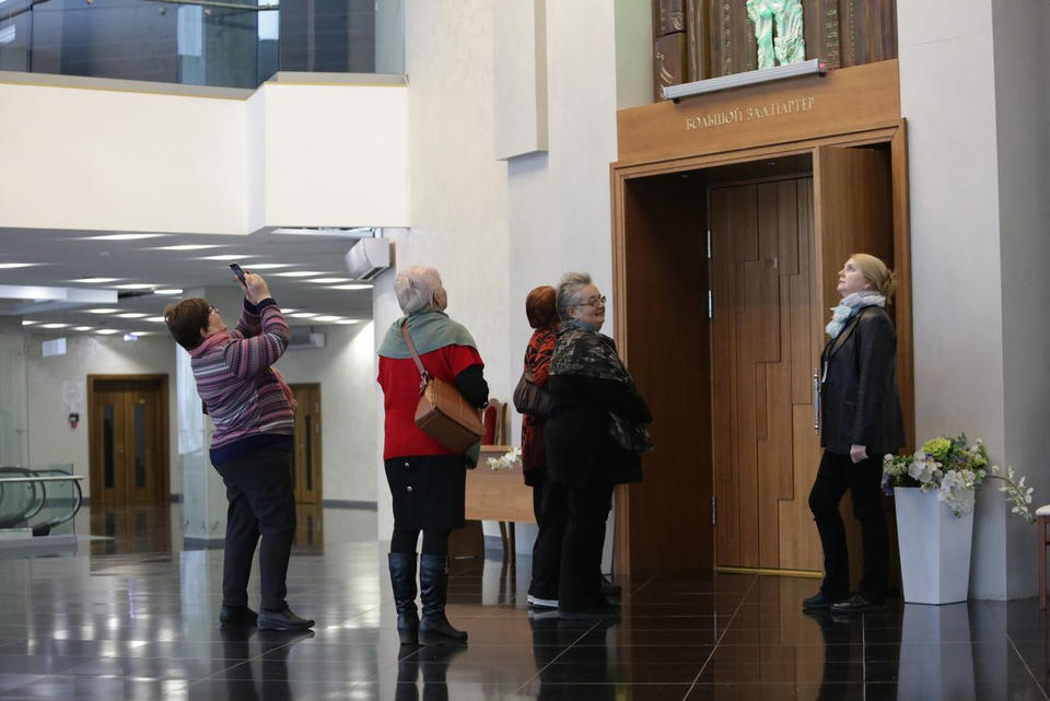 В ходе экскурсии гости посетили выставку картин, расположенную на первом этаже филармонии, заглянули в Большой зал, понаблюдали за работой оператора по свету, постояли на сцене, сделали фото на память.
