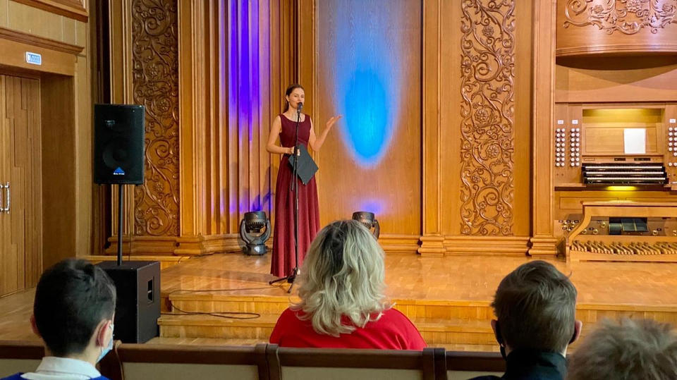 С концертом органной музыки для школьников выступила Софья Семьянова. В ходе концерта зрители также узнали интересные факты из истории органа и из биографий композиторов, сочинявших музыку для этого величественного инструмента.