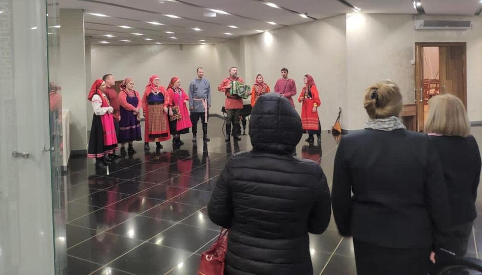 Перед концертом зрителей с программой «Добро пожаловать!» встречал ансамбль русской этнической музыки «Миряне».