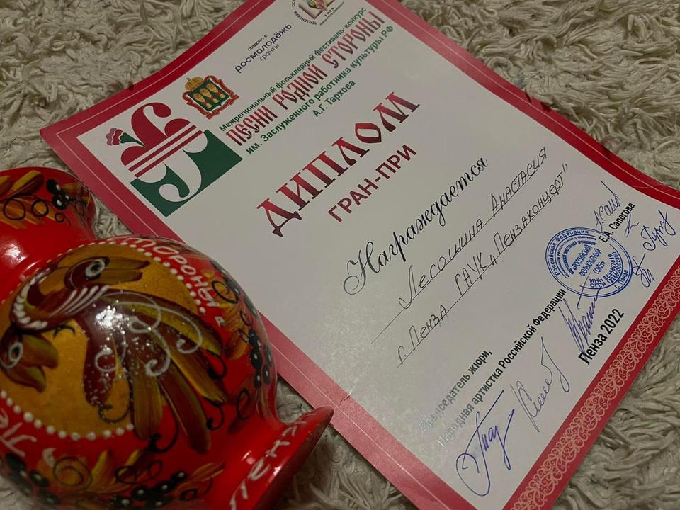 Поздравляем Анастасию с наградой и желаем новых творческих достижений!