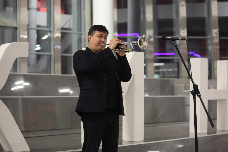 Перед началом церемонии закрытия с программой «Добро пожаловать!» по традиции встречали артисты «Пензаконцерта» – руководитель эстрадно-джазового ансамбля «Экспресс-бэнд» Юрий Белоногов (труба).