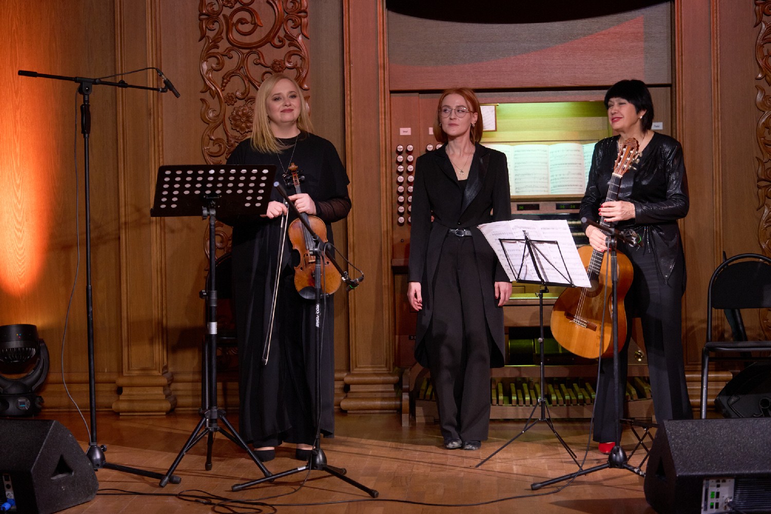 В концерте «Гитара, скрипка и орган» приняли участие: заслуженная артистка РФ Людмила Лузгина (гитара), Ирина Федотова (скрипка), Софья Семьянова (орган), Алиса Рудаева (гитара) и Наталья Михневич (художественное слово).
