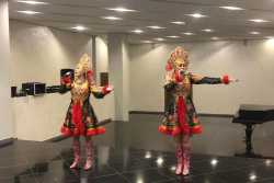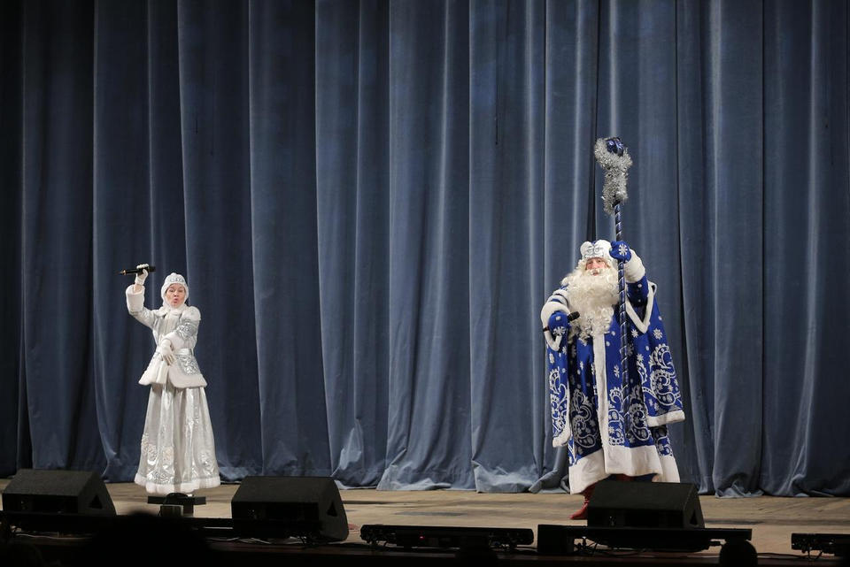 Перед спектаклем ребят ожидал сюрприз: с Новым Годом их поздравили Дед Мороз и Снегурочка. Артисты ансамбля русской этнической музыки «Миряне» провели с детьми увлекательную музыкальную викторину.