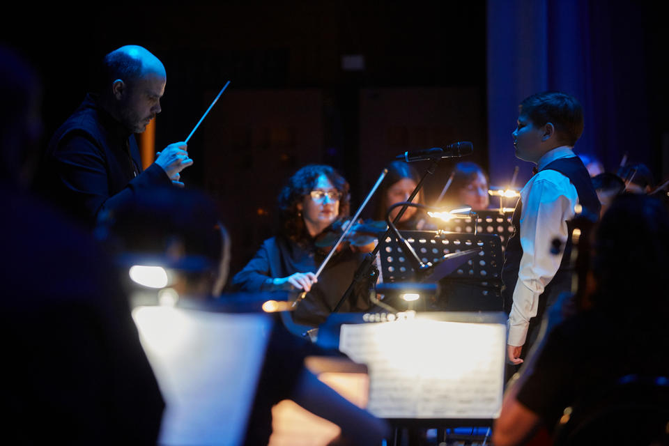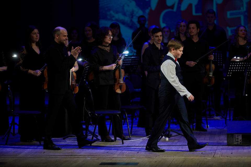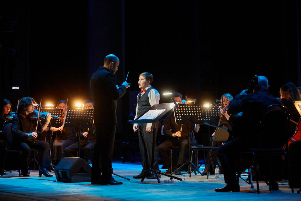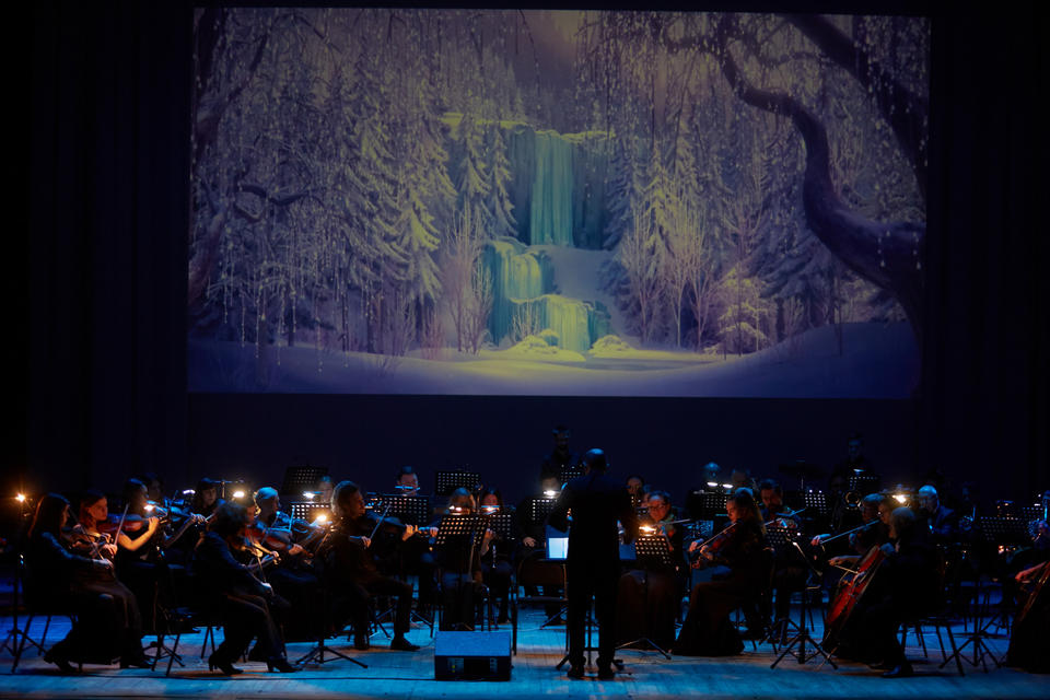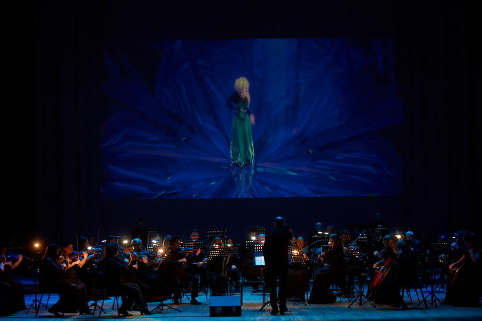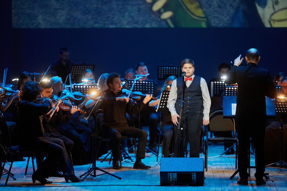 В Большом зале филармонии состоялся показ известной киноленты в сопровождении живого звучания симфонического оркестра. Вокальную партию исполнил учащийся детской школы искусств № 12 Александр Серов.