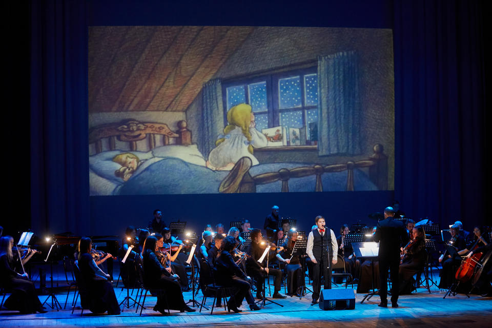 Уникальная детская программа собрала полный зал маленьких гостей, которым удалось не только посмотреть добрый мультфильм, но и услышать, как звучит большой симфонический оркестр.