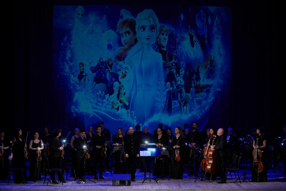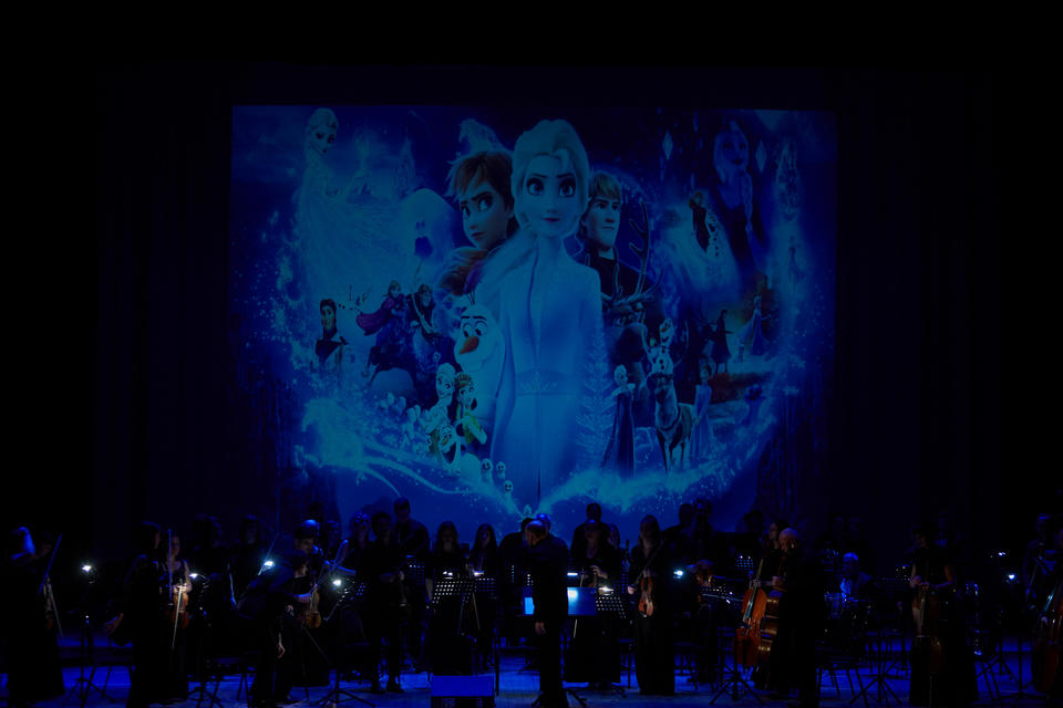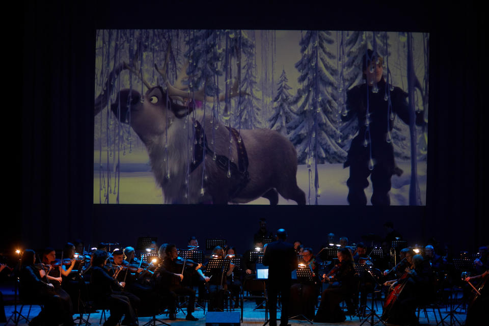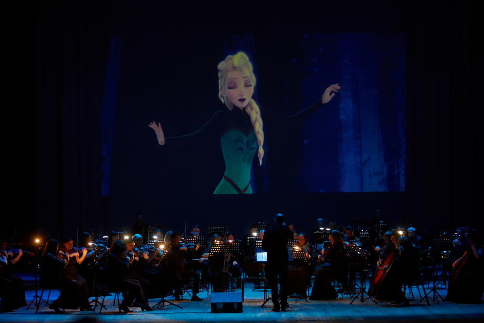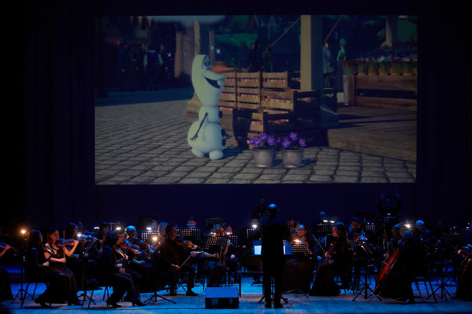 Сюрпризом для юных зрителей стало исполнение саундтрека к мультфильму «Холодное сердце» в сопровождении видеоряда из фрагментов путешествия другого известного снеговика — Олафа.