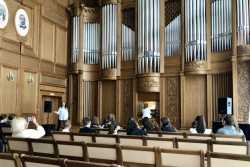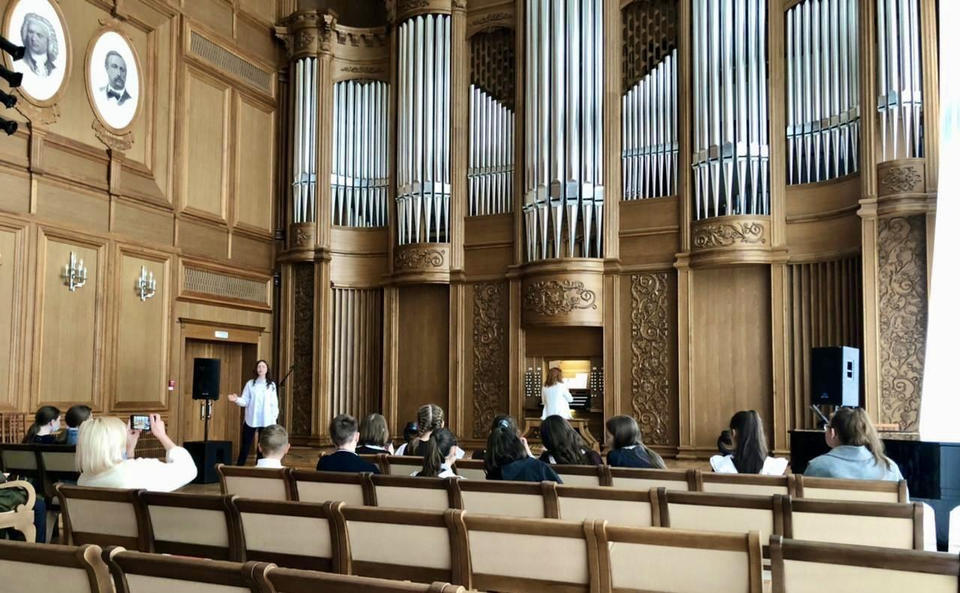 В ходе экскурсии ребята посмотрели выставку работ пензенских художников, расположенную на первом этаже, узнали интересные факты об архитектурных и стилистических особенностях здания филармонии, заглянули в концертные залы и познакомились с главным достоянием учреждения культуры – величественным органом.