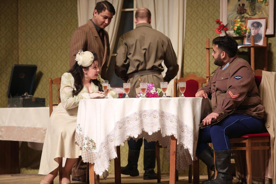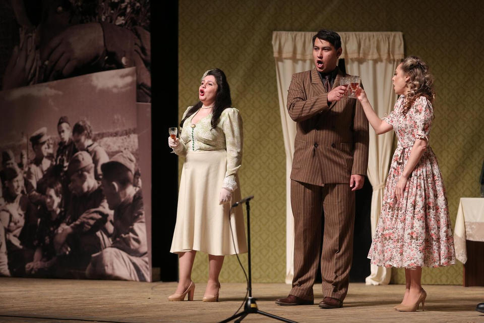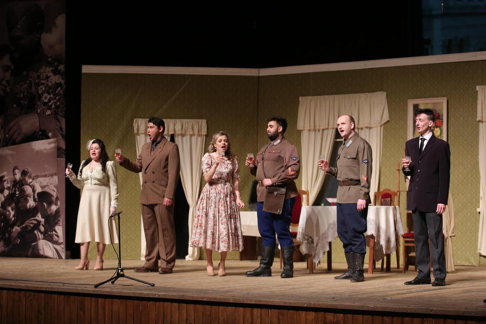 Действие спектакля сопровождалось музыкальными композициями, горячо любимыми не одним поколением россиян: «Священная война», «Двадцать второго июня, ровно в 4 часа», «Он не вернулся из боя», «На безымянной высоте», «В землянке», «Тёмная ночь», «Давай закурим», «Перелетные птицы», «Песенка военных корреспондентов», «Дорога на Берлин», «Не забывай те грозные года» и, конечно же, знаменитая ария «Жди меня».