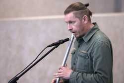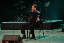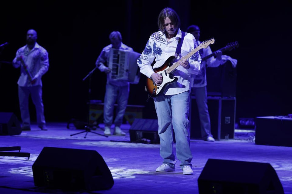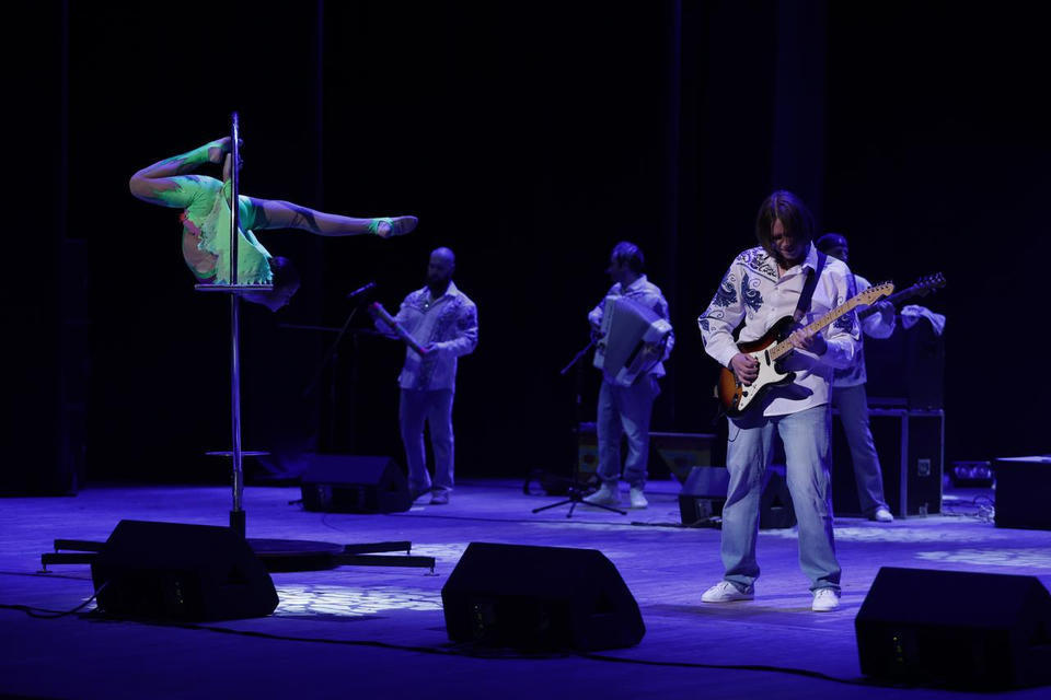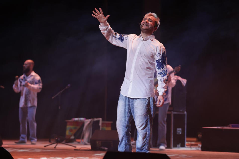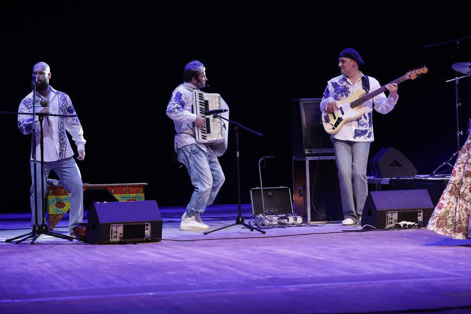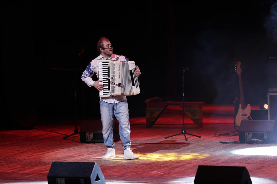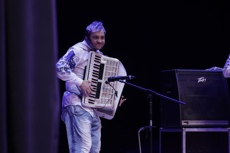 А перед концертом зрителей с программой «Добро пожаловать!» встречал музыкант ансамбля «Губернiя» Виктор Климов.