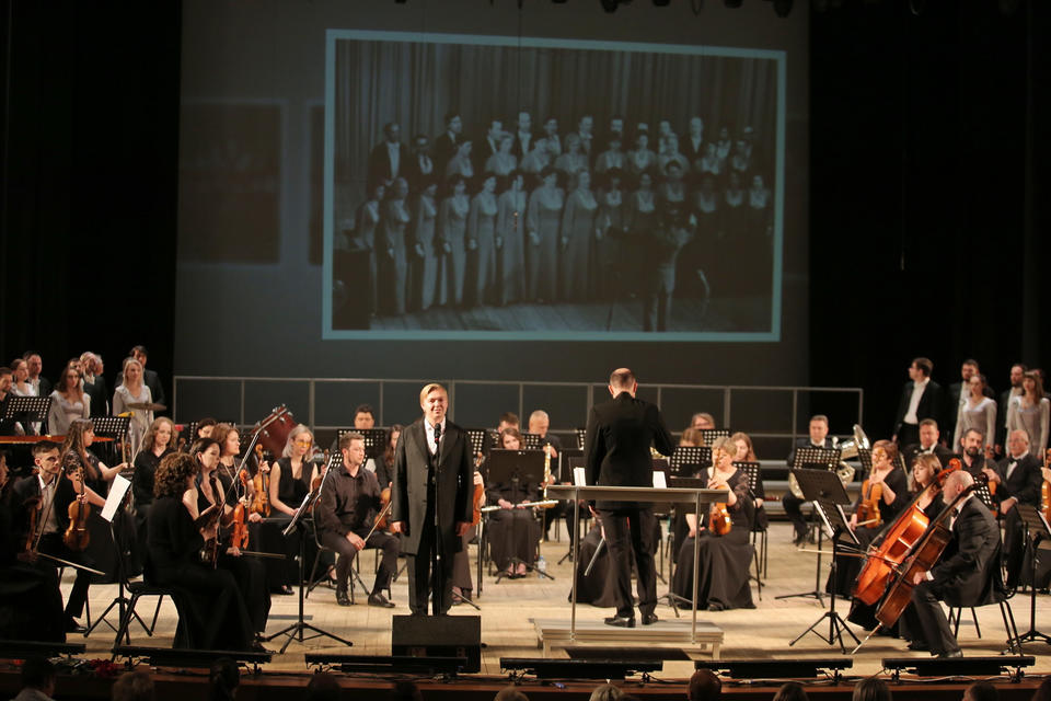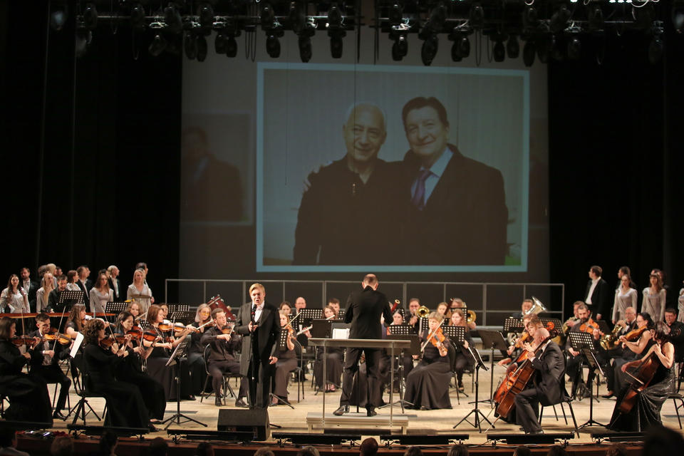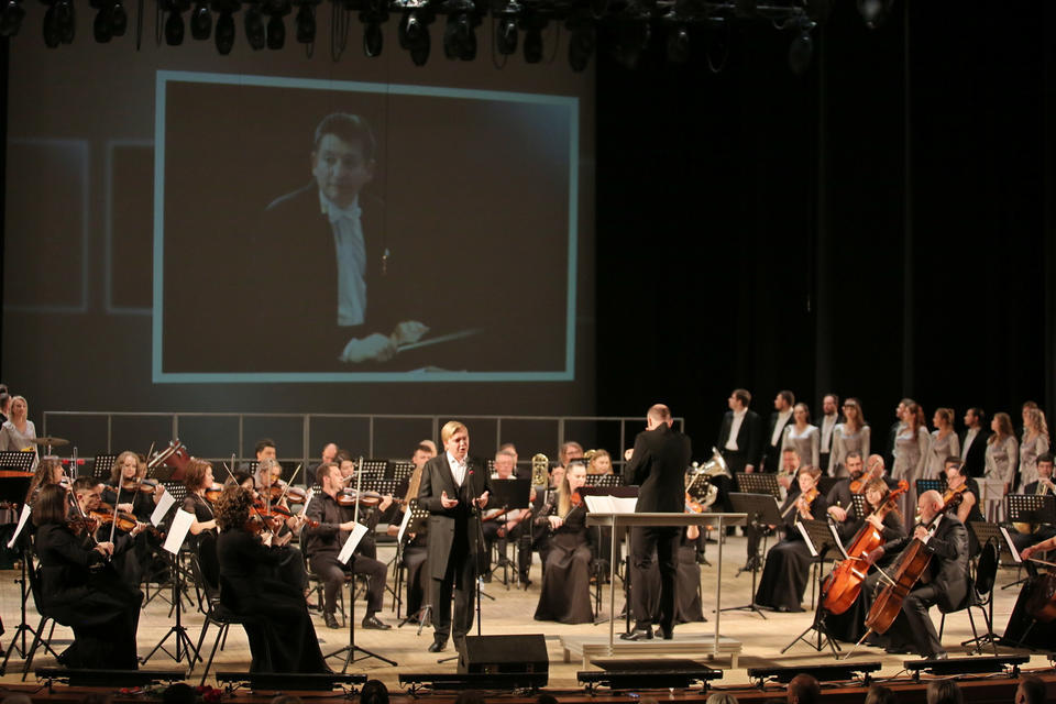 Память маэстро все артисты и зрители почтили минутой молчания. А затем прозвучала композиция «Как молоды мы были» в исполнении Романа Николаева. Музыкальный ряд сопровождал видеоролик, посвященный страницам творческой жизни основателя Губернаторской симфонической капеллы.