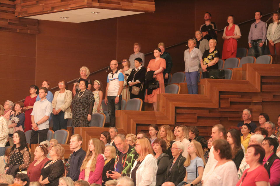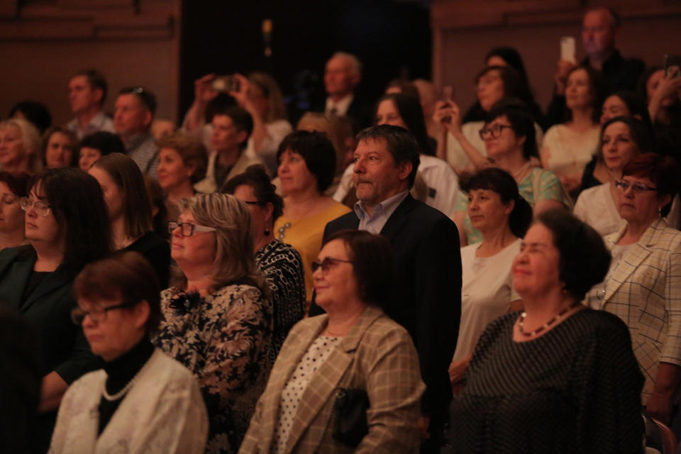 А в завершении юбилейного вечера прозвучал Хор «Славься» из оперы М. Глинки «Иван Сусанин». Это поистине мощное произведение зрители слушали стоя, а потом еще долго в зале не смолкали овации.