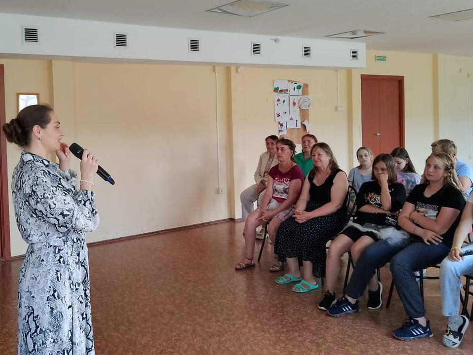 Во вторник, 27 июня, в одном из пунктов временного размещения в с. Леонидовка, выступили: солистка ансамбля народных инструментов «Губернiя», заслуженная артистка Пензенской области Марта Серебрякова и балалаечник-виртуоз Иван Нивин.