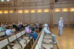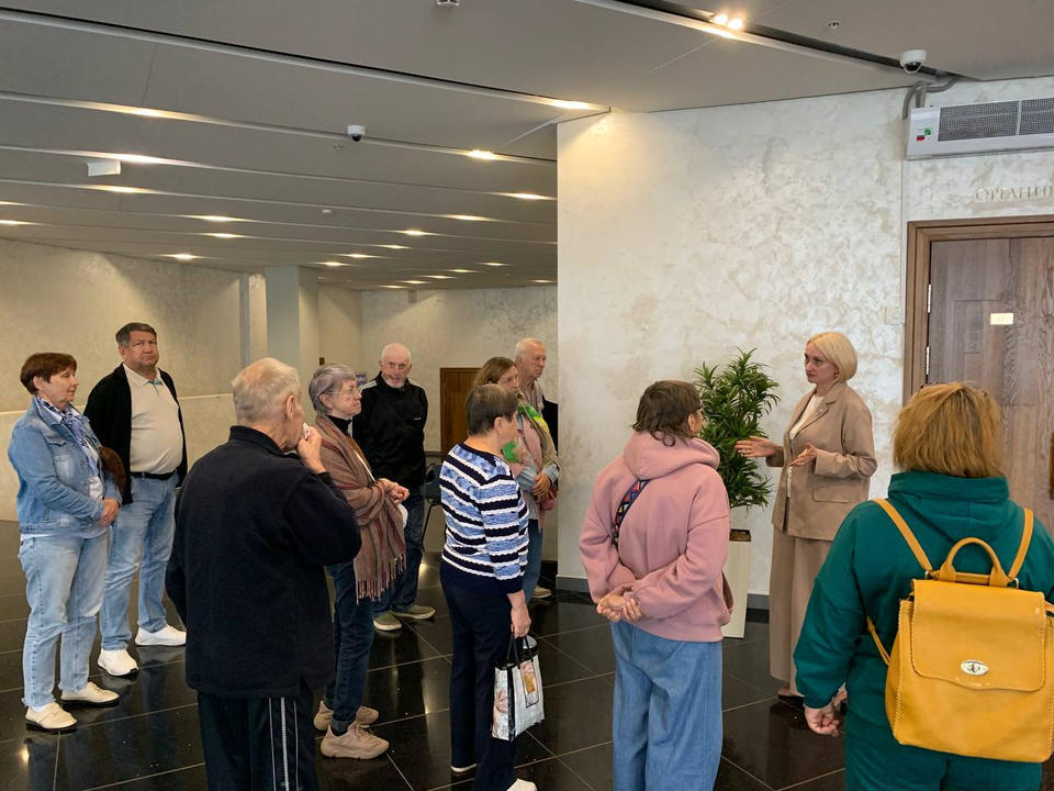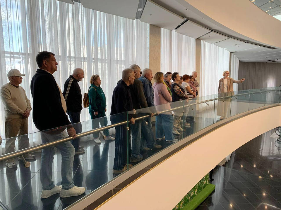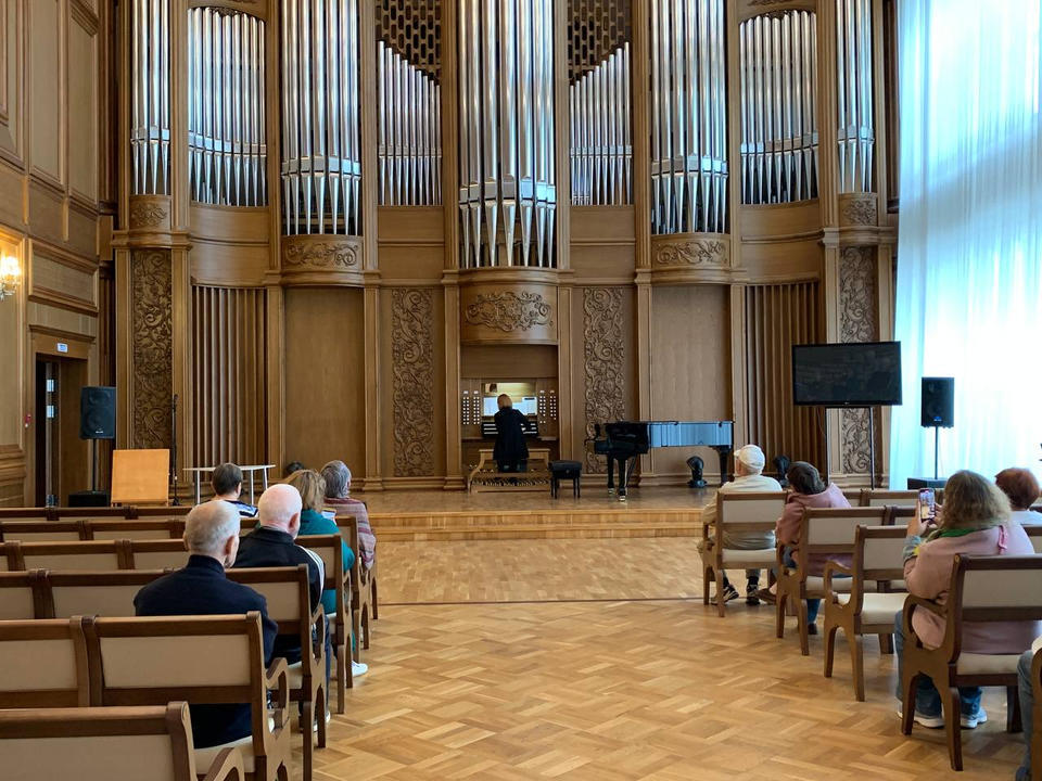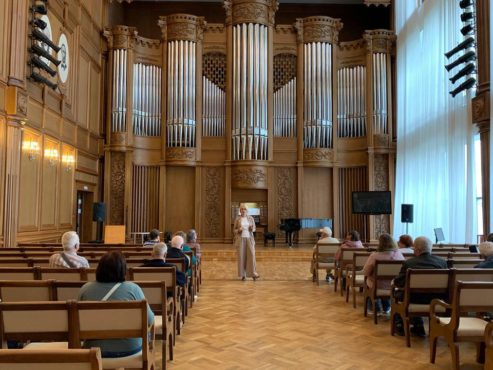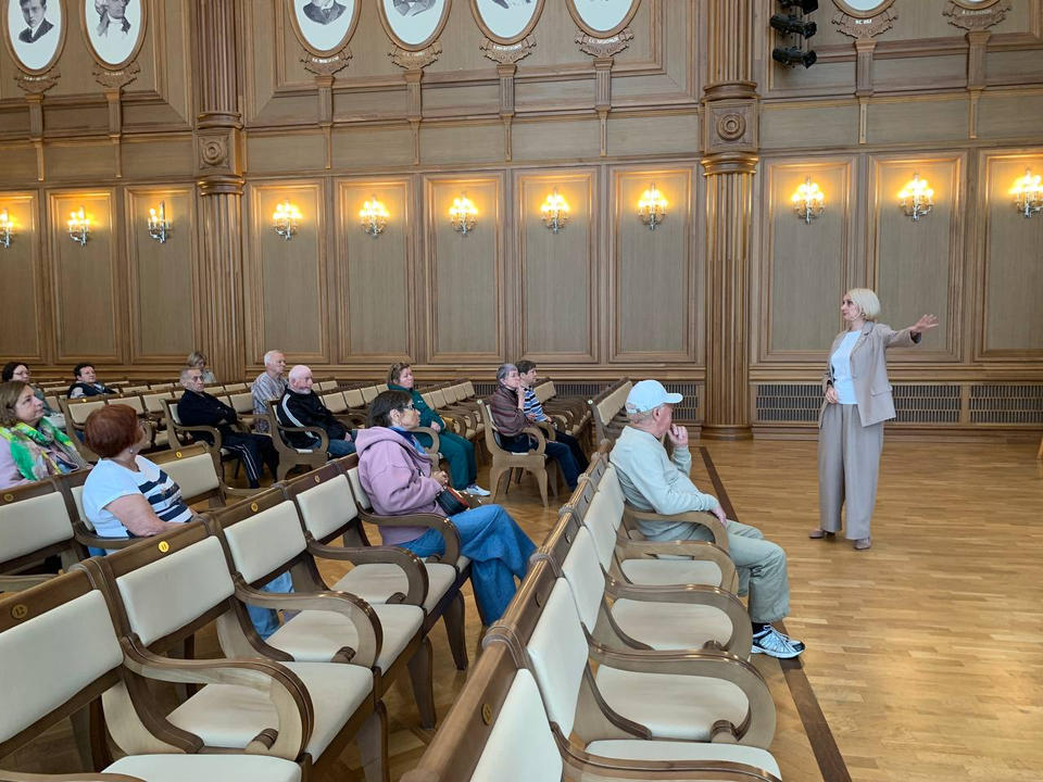 Гости побывали в Большом концертном зале филармонии, узнали много фактов об архитектурных особенностях здания и его внутренней отделки, сделали фото на память.