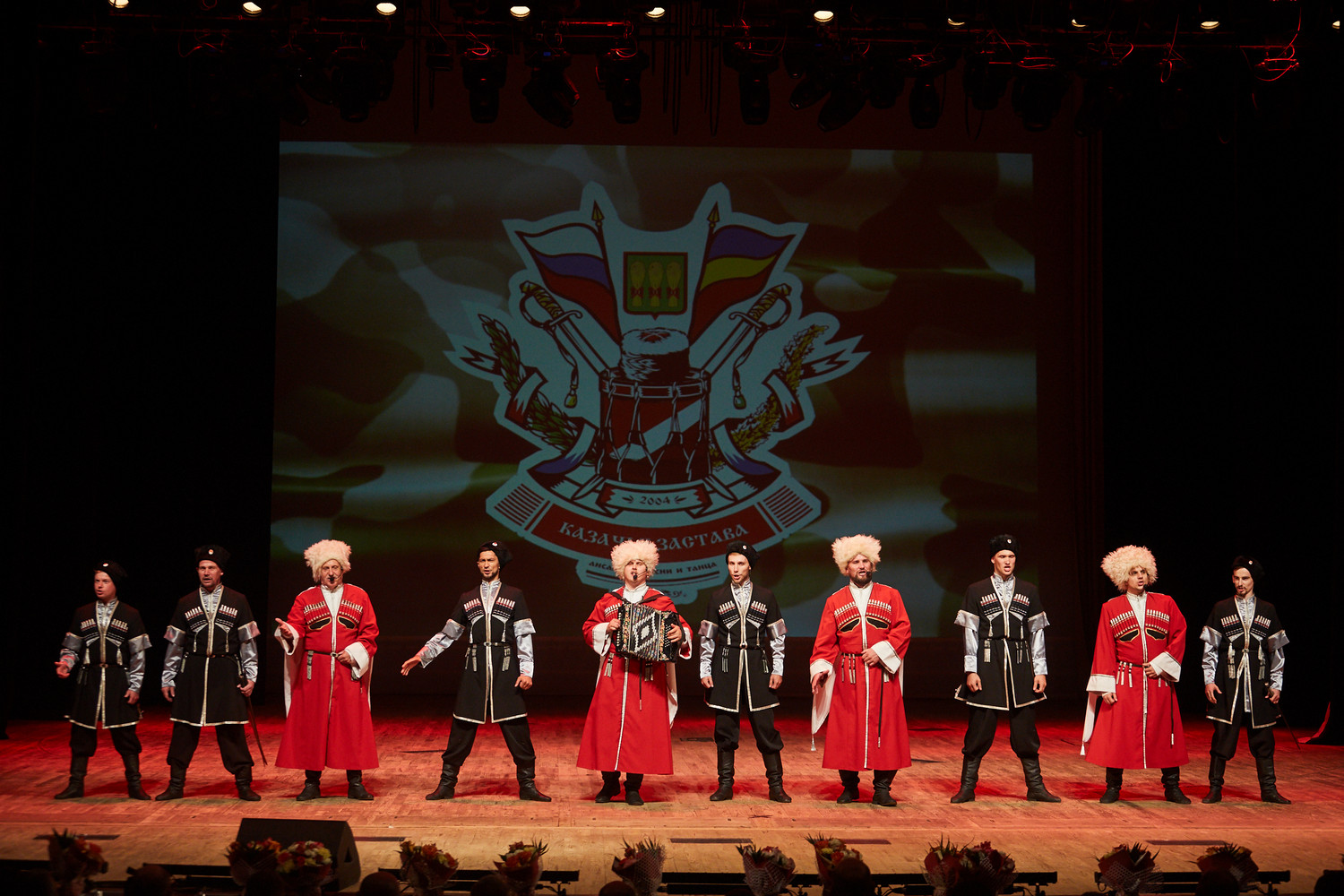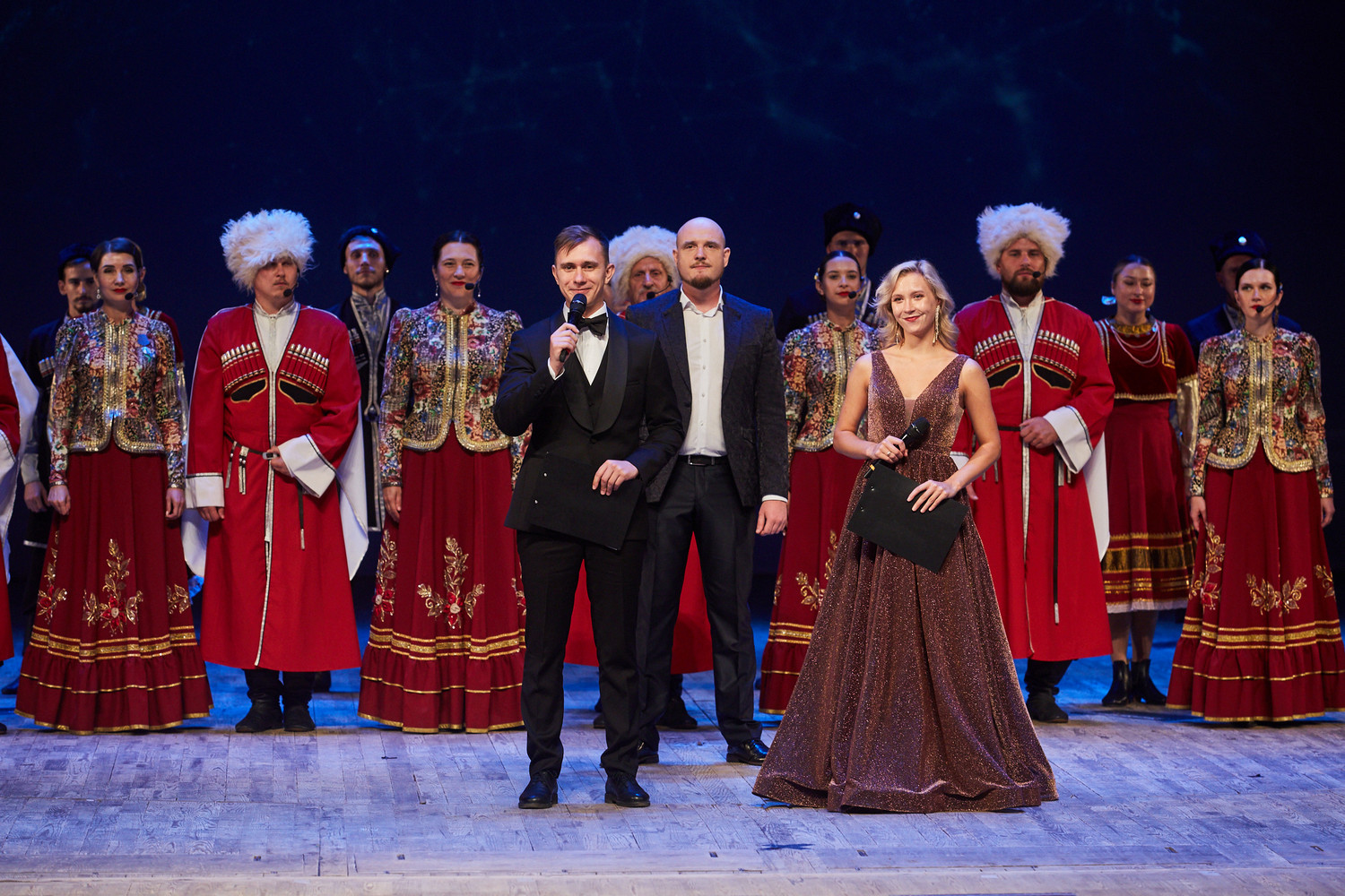 В фойе филармонии гостей встречал музыкант ансамбля песни и танца «Казачья застава» Александр Мереняшев (труба) с музыкальной программой из цикла «Добро пожаловать!».