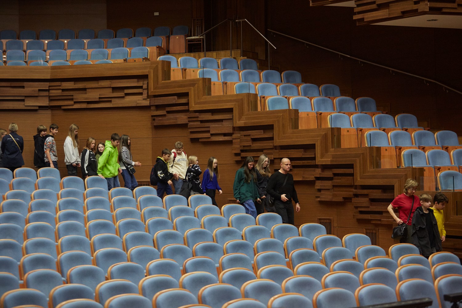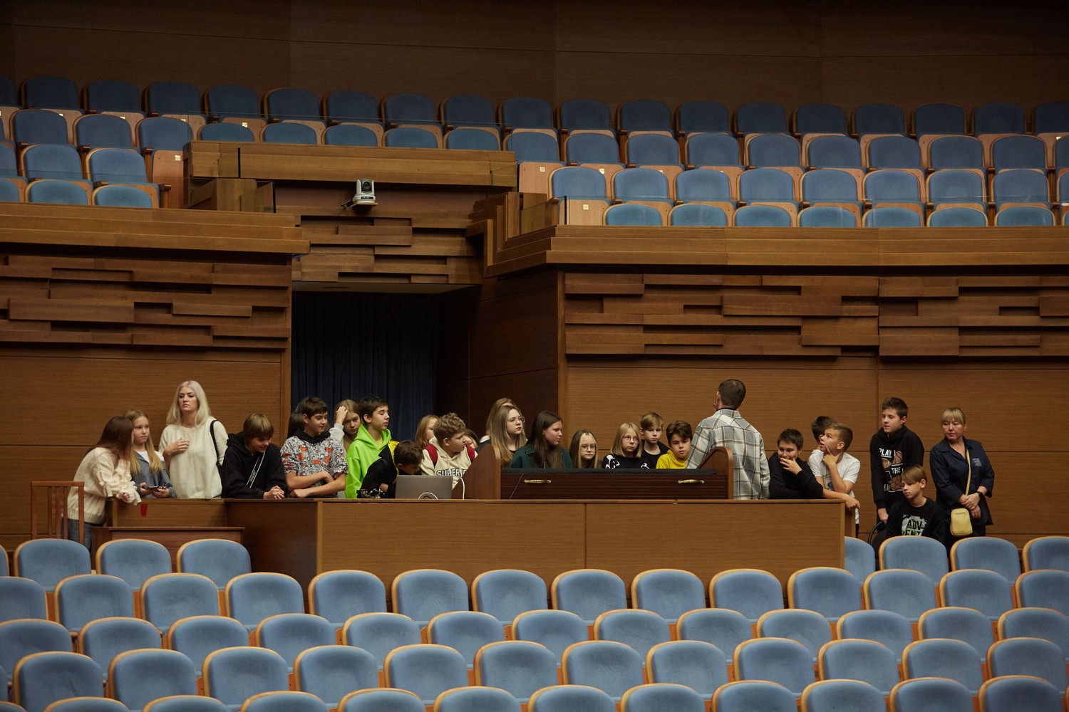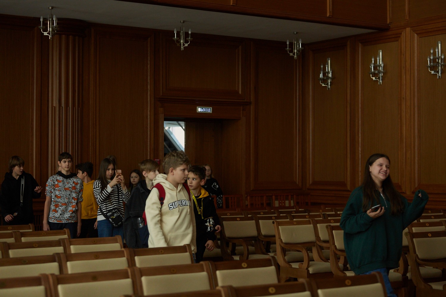 В ходе экскурсионного маршрута по филармонии ребята побывали в концертных залах, заглянули за кулисы, послушали информацию о современном звуковом и световом оборудовании, узнали интересные факты об архитектурных и стилистических особенностях здания.