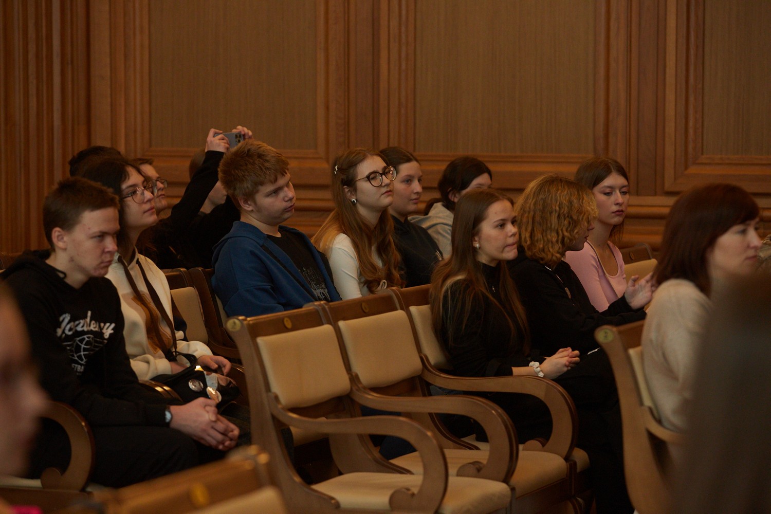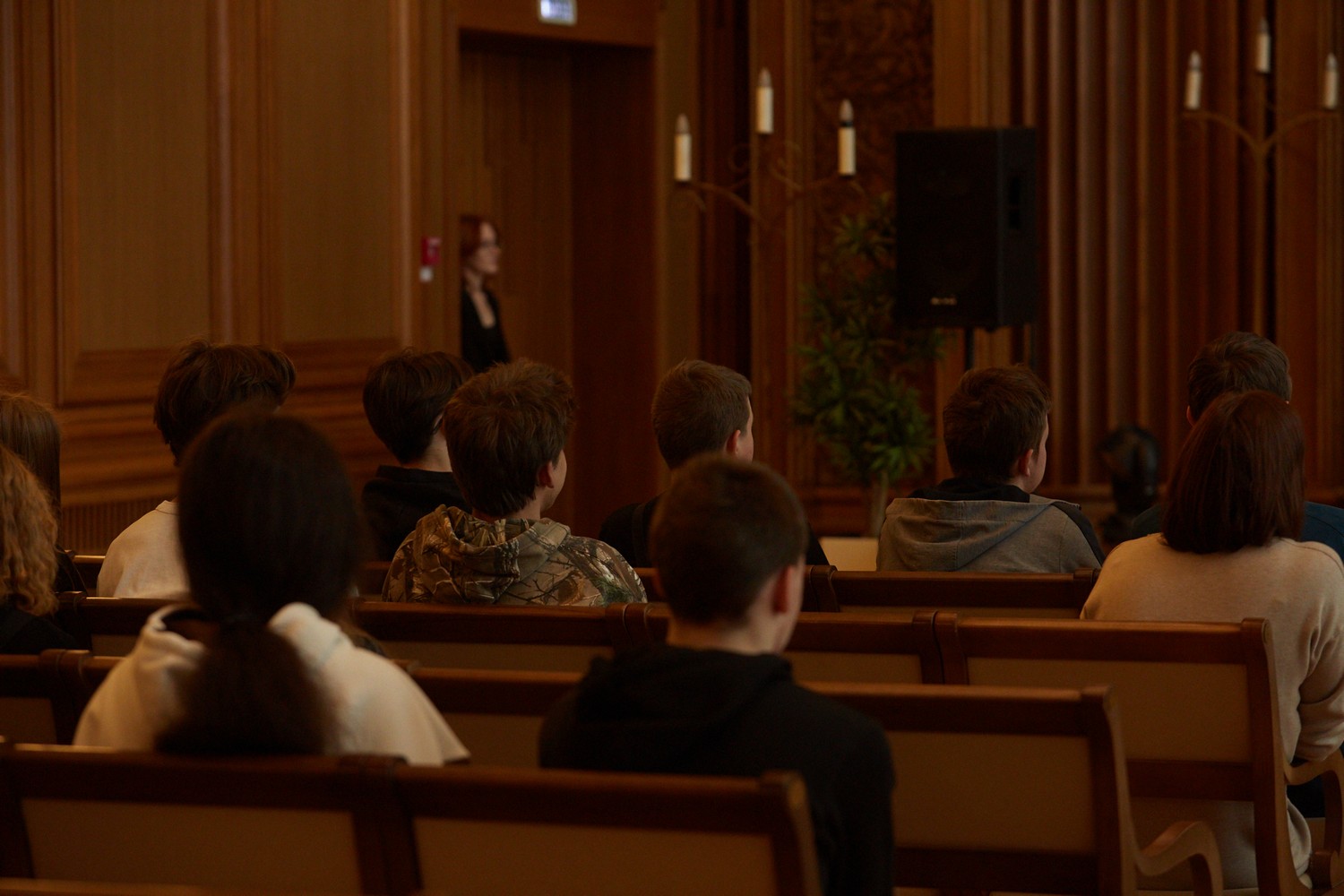 В ходе экскурсионного маршрута по филармонии ребята побывали в концертных залах, заглянули за кулисы, послушали информацию о современном звуковом и световом оборудовании, узнали интересные факты об архитектурных и стилистических особенностях здания.