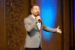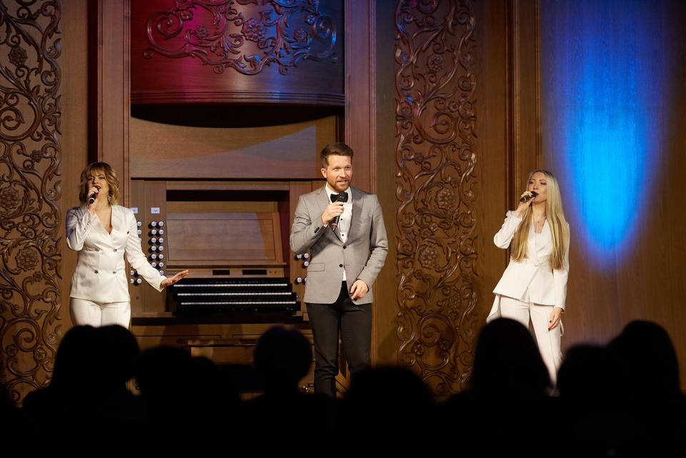 Перед концертом зрителей с программой «Добро пожаловать!» встречал руководитель эстрадно-джазового ансамбля «Экспресс-бэнд» Юрий Белоногов.