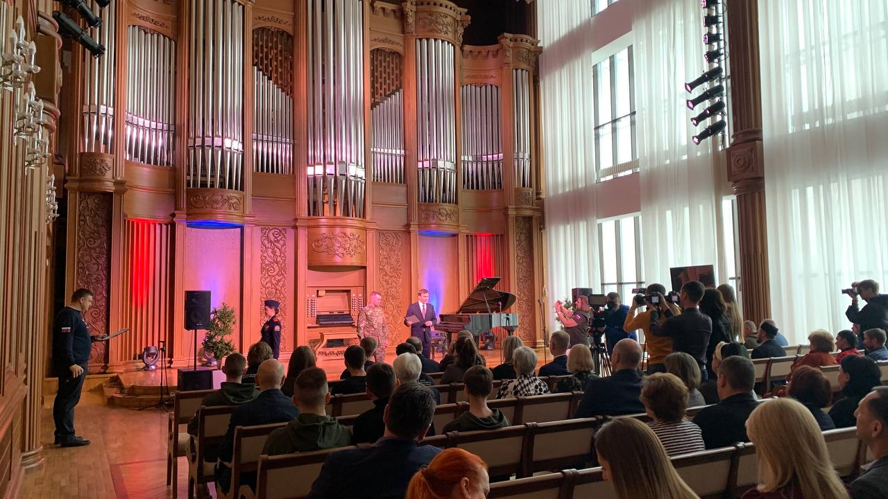 Сегодня в Органном зале филармонии состоялась торжественная церемония награждения нагрудными знаками «Народный фронт. Всё для Победы» волонтеров за содействие бойцам, находящимся в зоне СВО, а также за осуществление добровольческой деятельности в интересах мирных граждан на территориях Донецкой и Луганской Народных Республик, Запорожской и Херсонской областей.