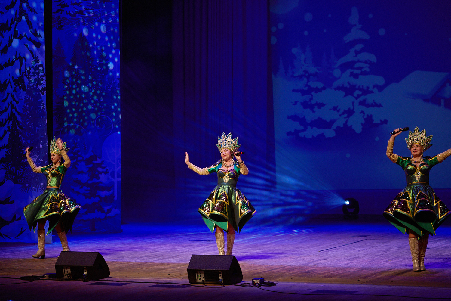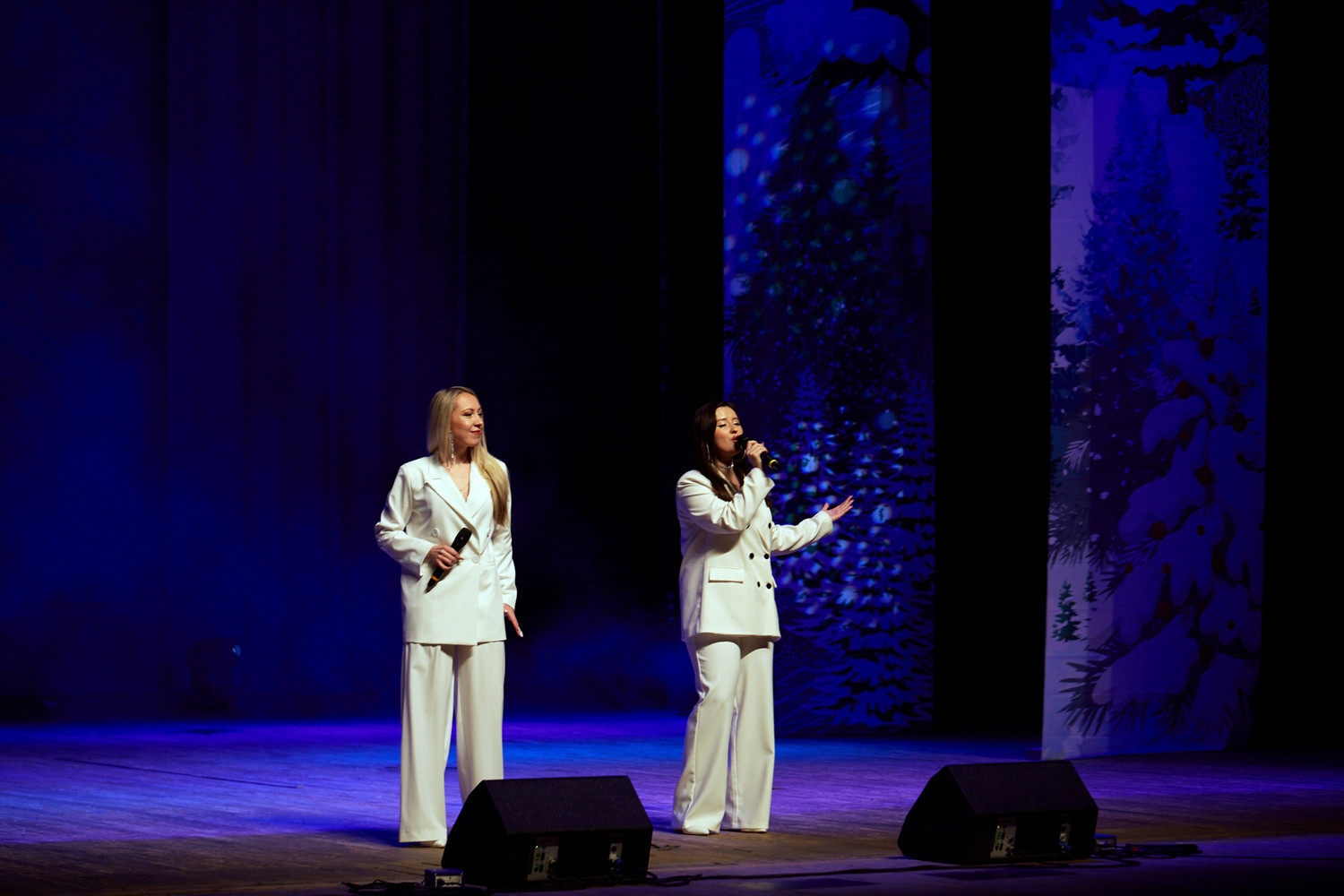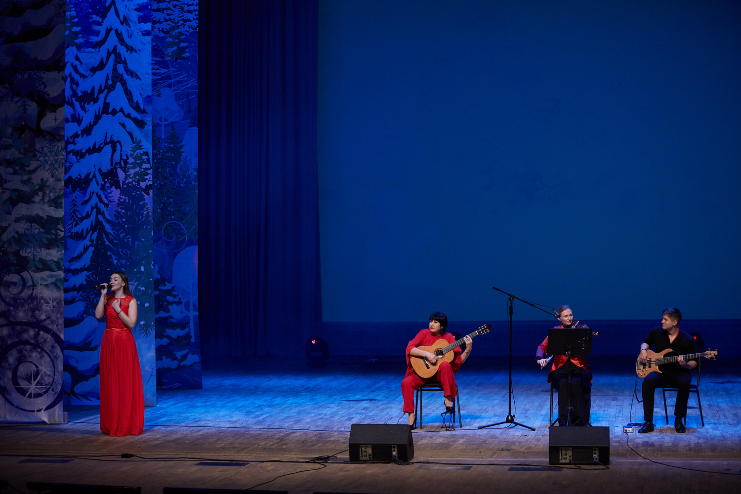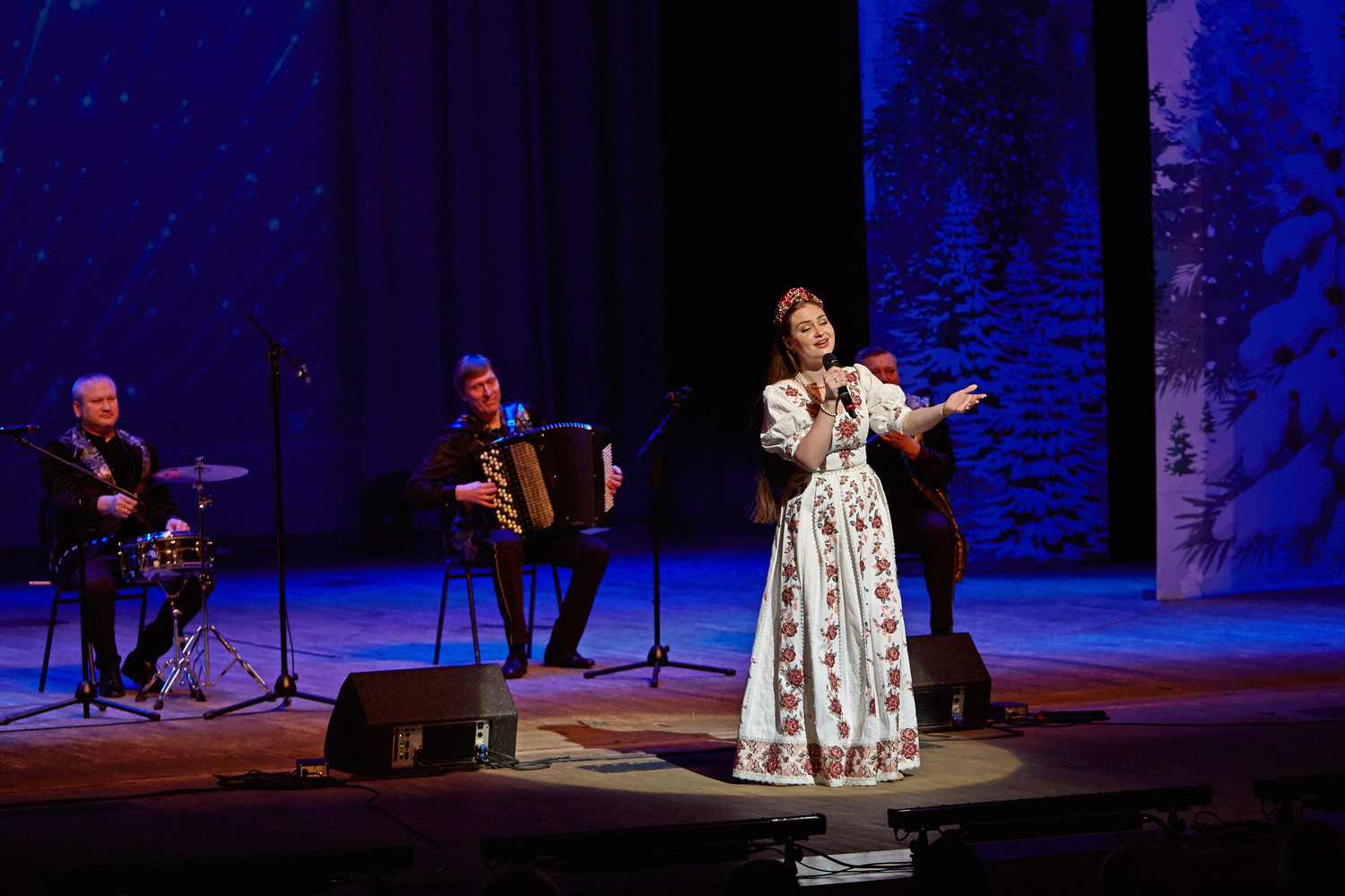 В исполнении артистов прозвучали любимые новогодние песни, хиты отечественной эстрады, народные и авторские композиции на зимние темы: «Потолок ледяной», «Снег кружится», «Белым снегом», «Синий иней»,«Январская вьюга» и многие другие.