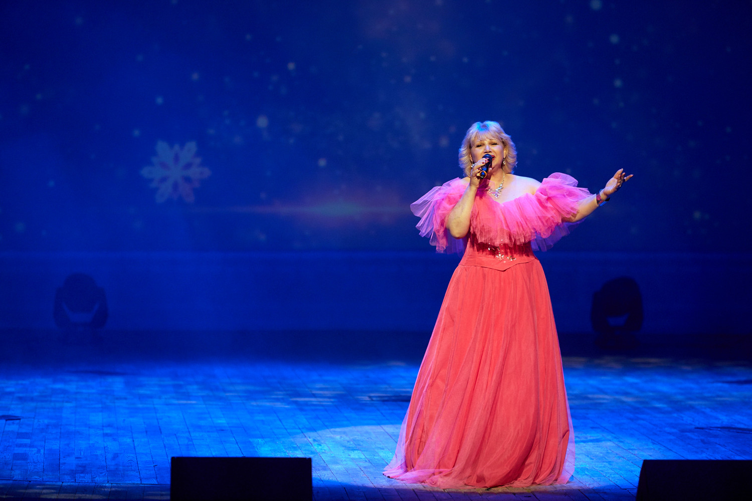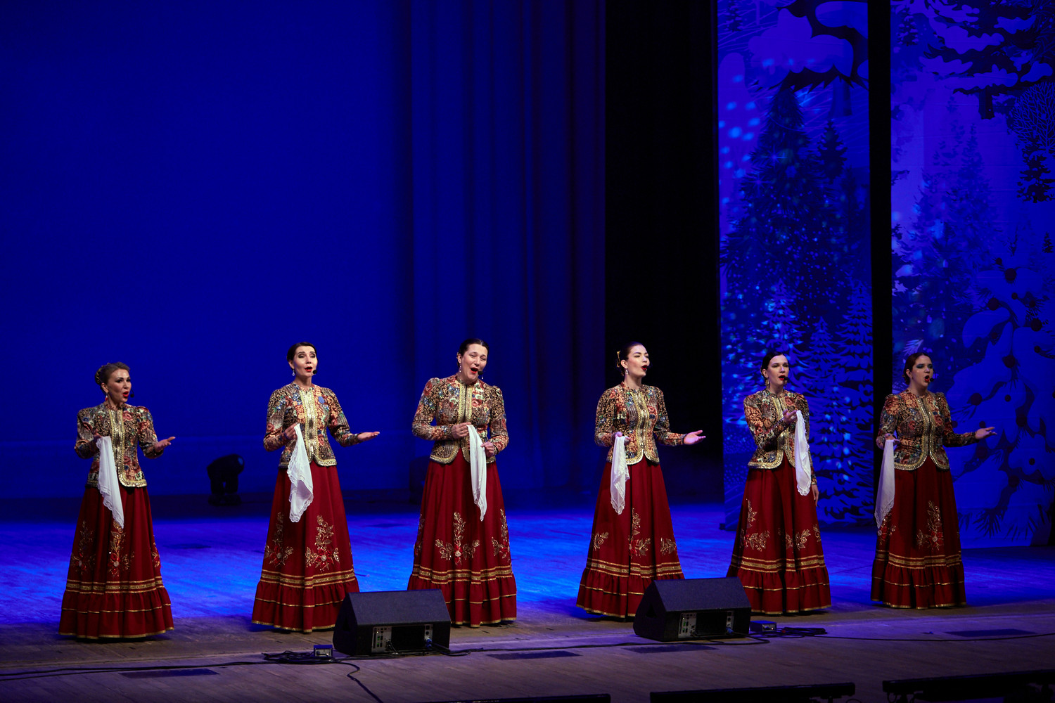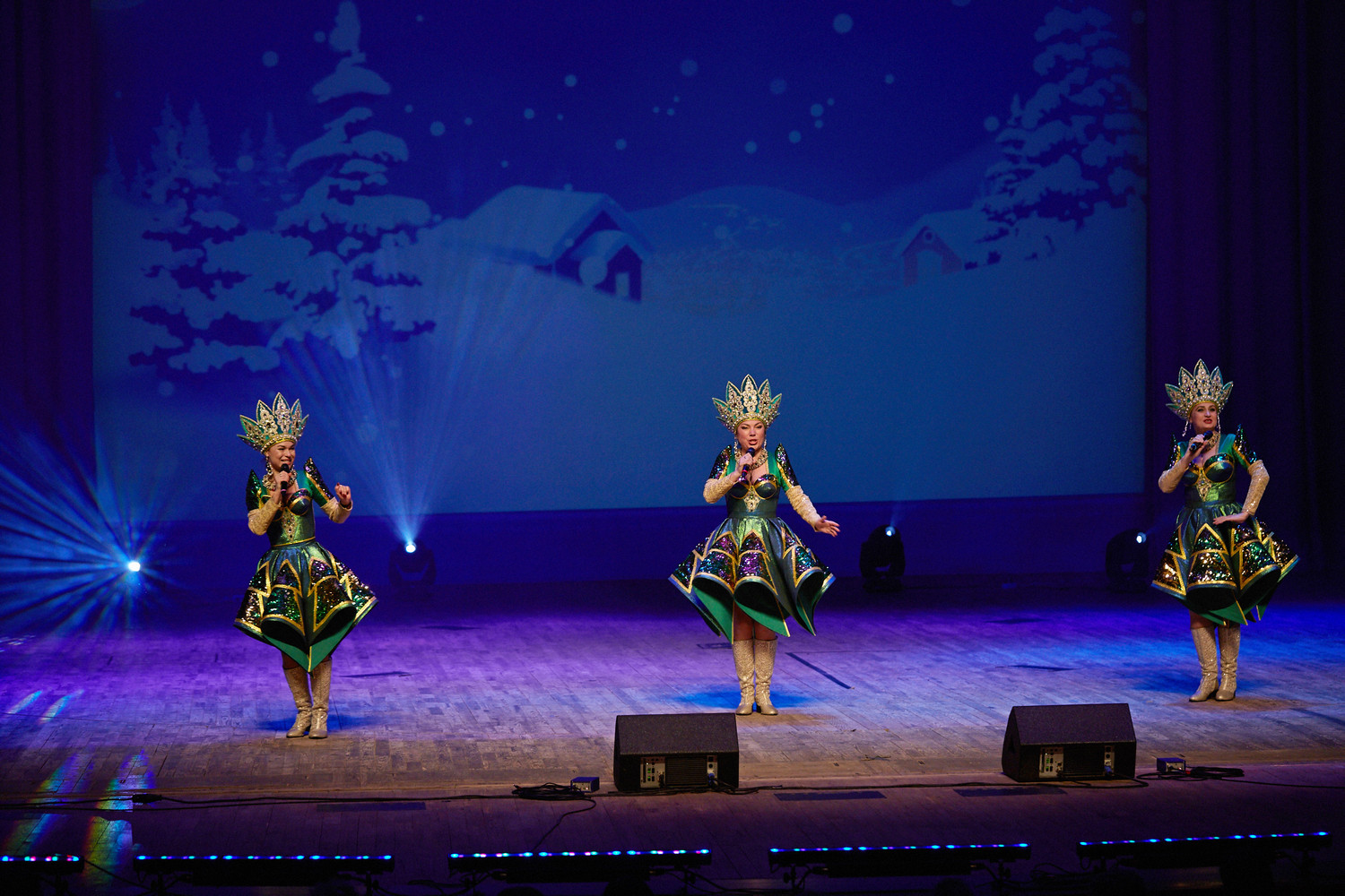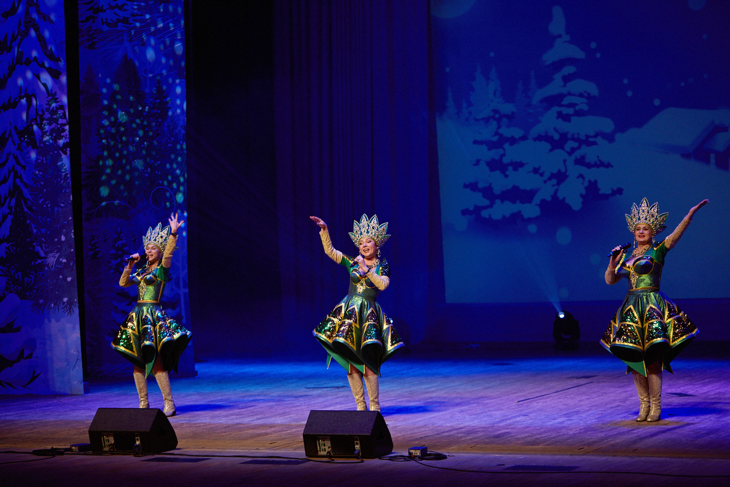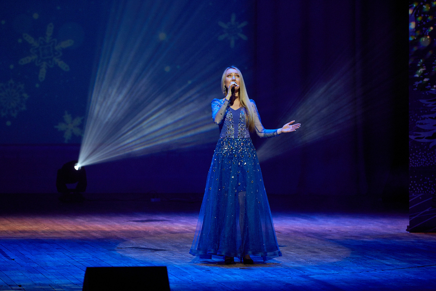 В исполнении артистов прозвучали любимые новогодние песни, хиты отечественной эстрады, народные и авторские композиции на зимние темы: «Потолок ледяной», «Снег кружится», «Белым снегом», «Синий иней»,«Январская вьюга» и многие другие.
