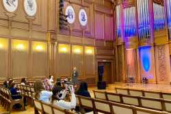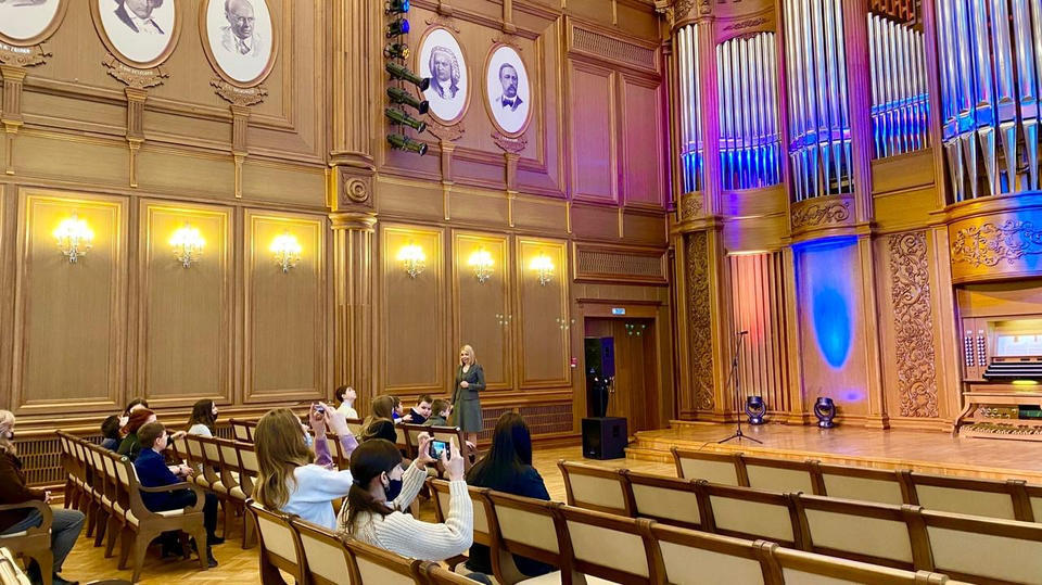 Ребята познакомились с особенностями архитектуры и дизайна здания филармонии, побывали в Большом и Органном залах, постояли на сцене, сделали много фотографий на память.