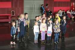 А перед сеансом юные гости с удовольствием поучаствовали в развлекательно-музыкальной программе группы «Калейдоскоп». Артисты исполнили известные песни из любимых детских мультиков и фильмов, провели с ребятами увлекательные конкурсы и викторины.