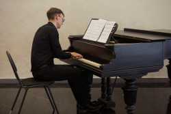 Гостей вечера встречал артист эстрадно-джазового ансамбля Геннадий Купринович (фортепиано) с музыкальной программой в рамках цикла «Добро пожаловать!».