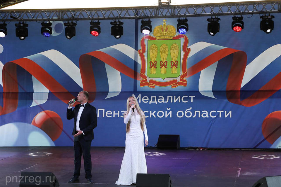 Солистка эстрадно-джазового ансамбля «Экспресс-бэнд» Светлана Бисяева и солист Губернаторской симфонической капеллы Сергей Князев выступили на Губернском празднике «Медалист-2020», который состоялся 28 июля на стадионе «Первомайский».