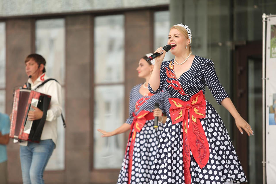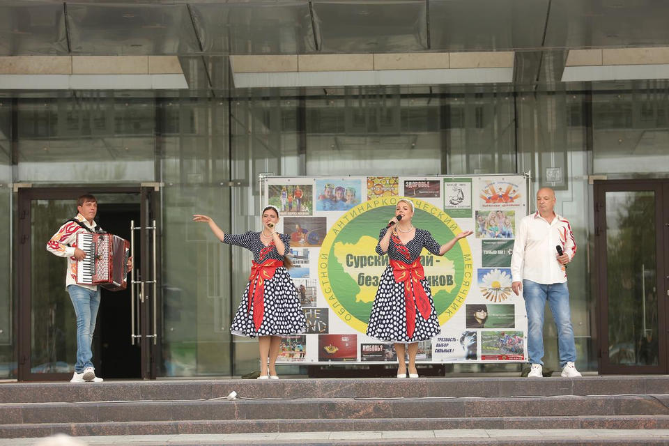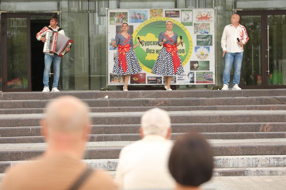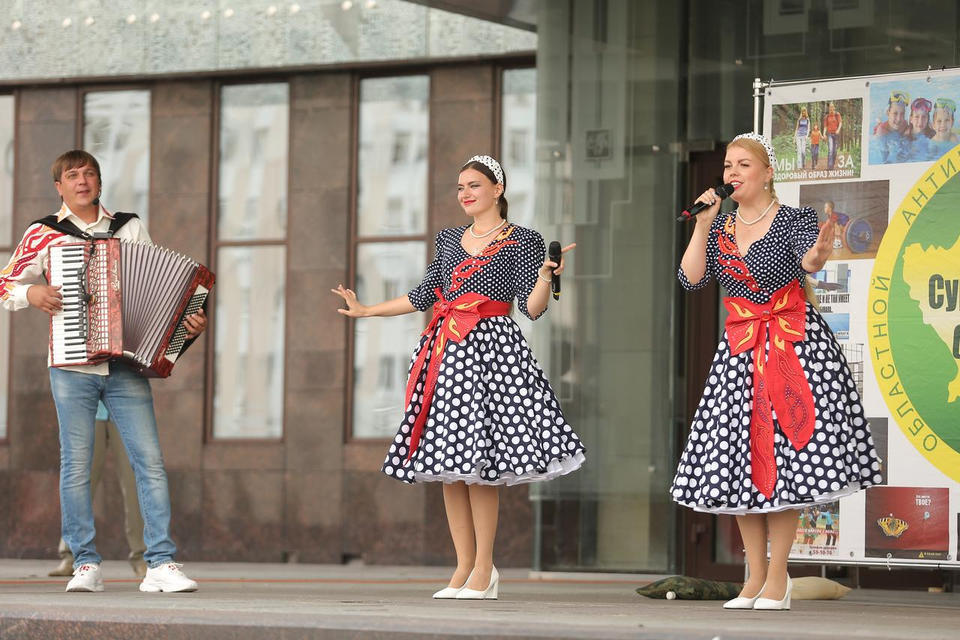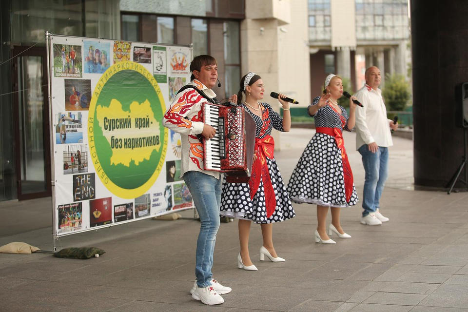 На площади возле центрального входа в здание филармонии программу «Музыка против наркотиков» представил ансамбль «Горница».