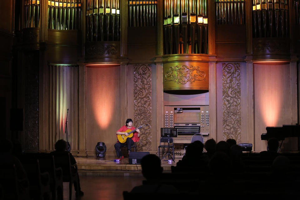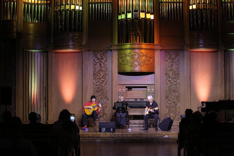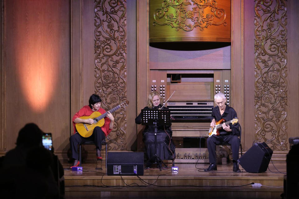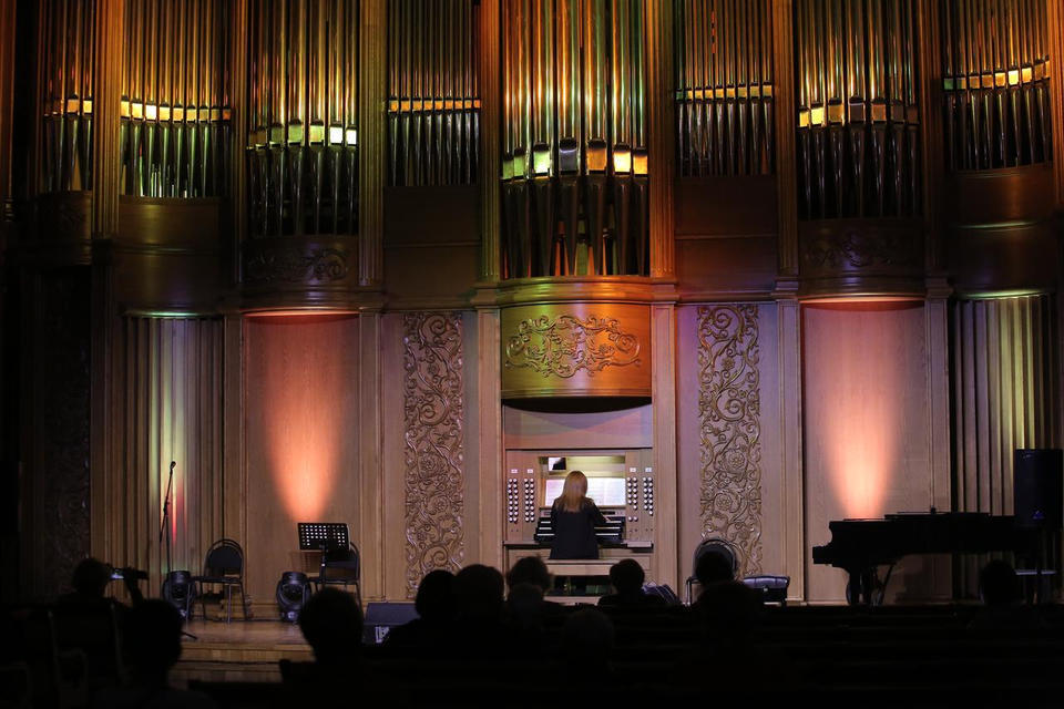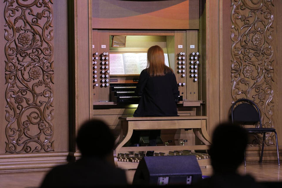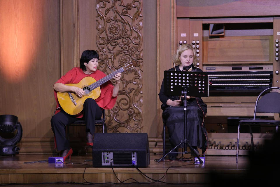 С концертной программой «Музыка кино» выступили Софья Семьянова (орган) и творческий коллектив «Экспромт» (руководитель – Заслуженная артистка России Людмила Лузгина).