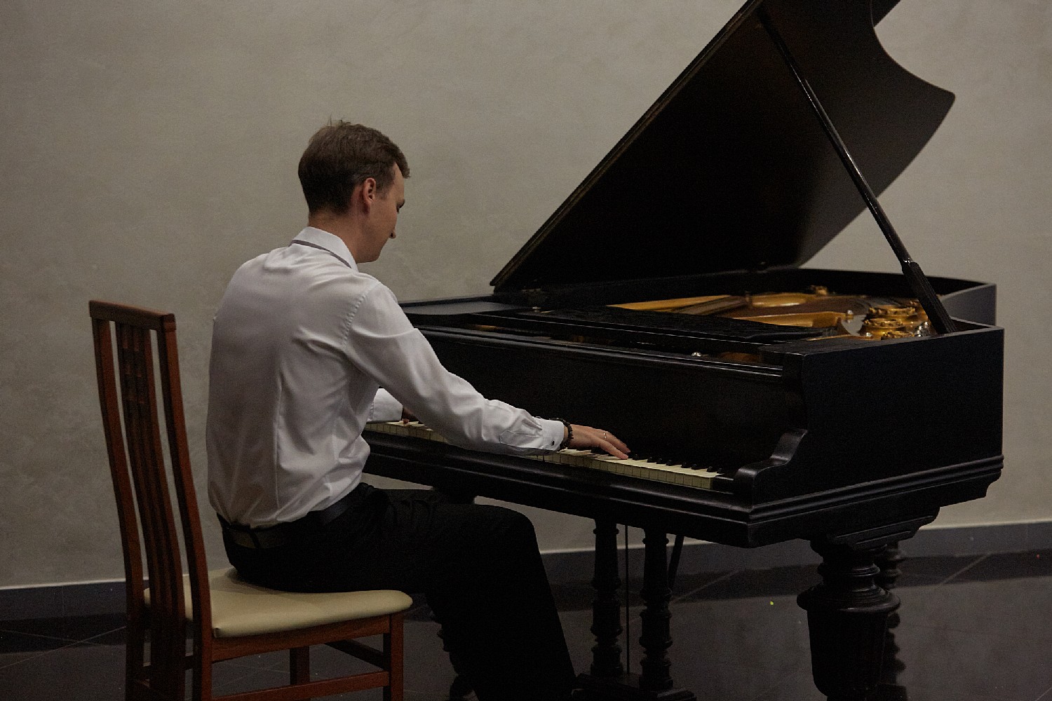 Перед вечерним представлением зрителей встречал музыкант эстрадно-джазового ансамбля «Экспресс-бэнд» Геннадий Купринович (фортепиано) с музыкальной программой из цикла «Добро пожаловать!».